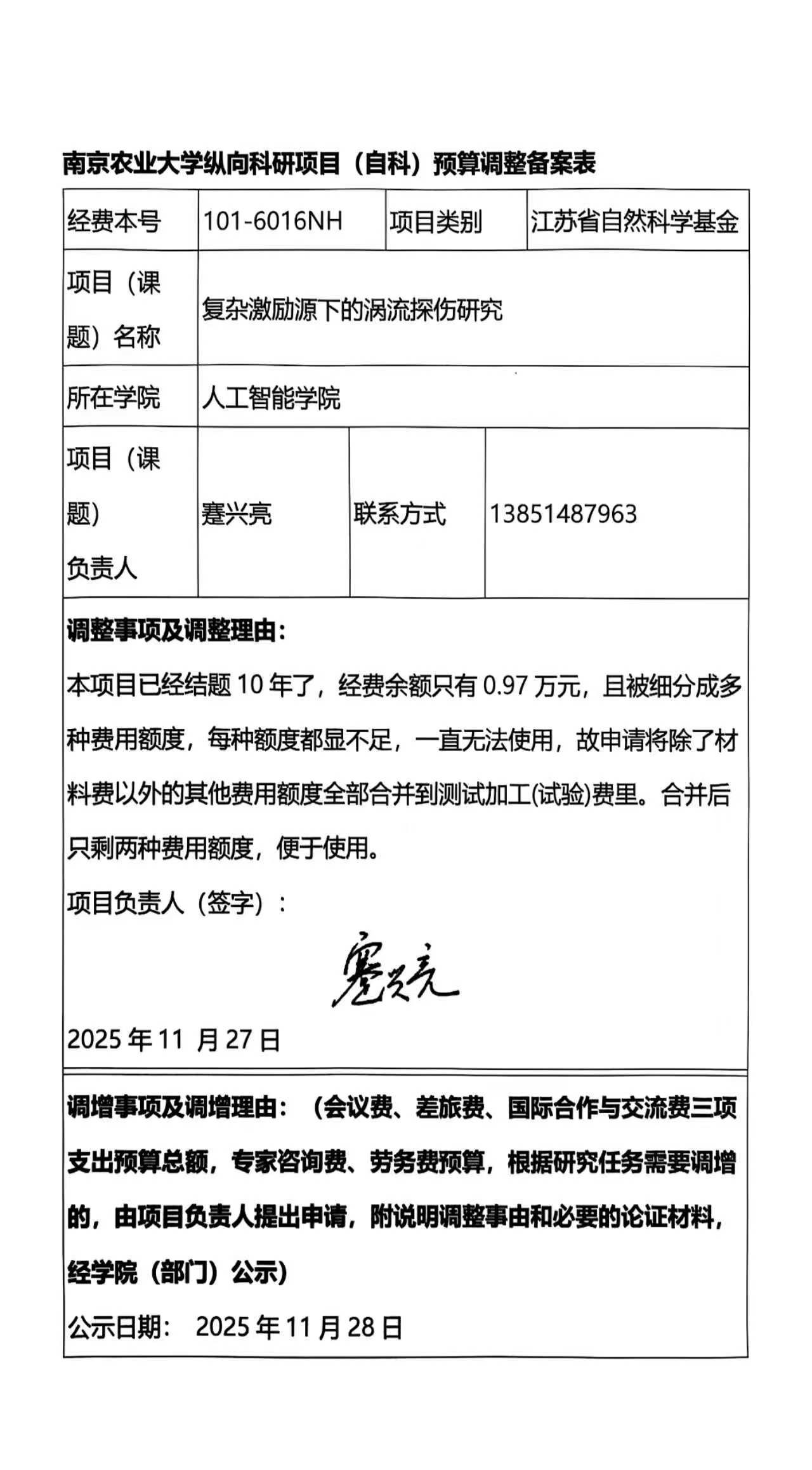 中文色情 纵向科研项目(自科)预算调整(学院)公示(2025年11月)
