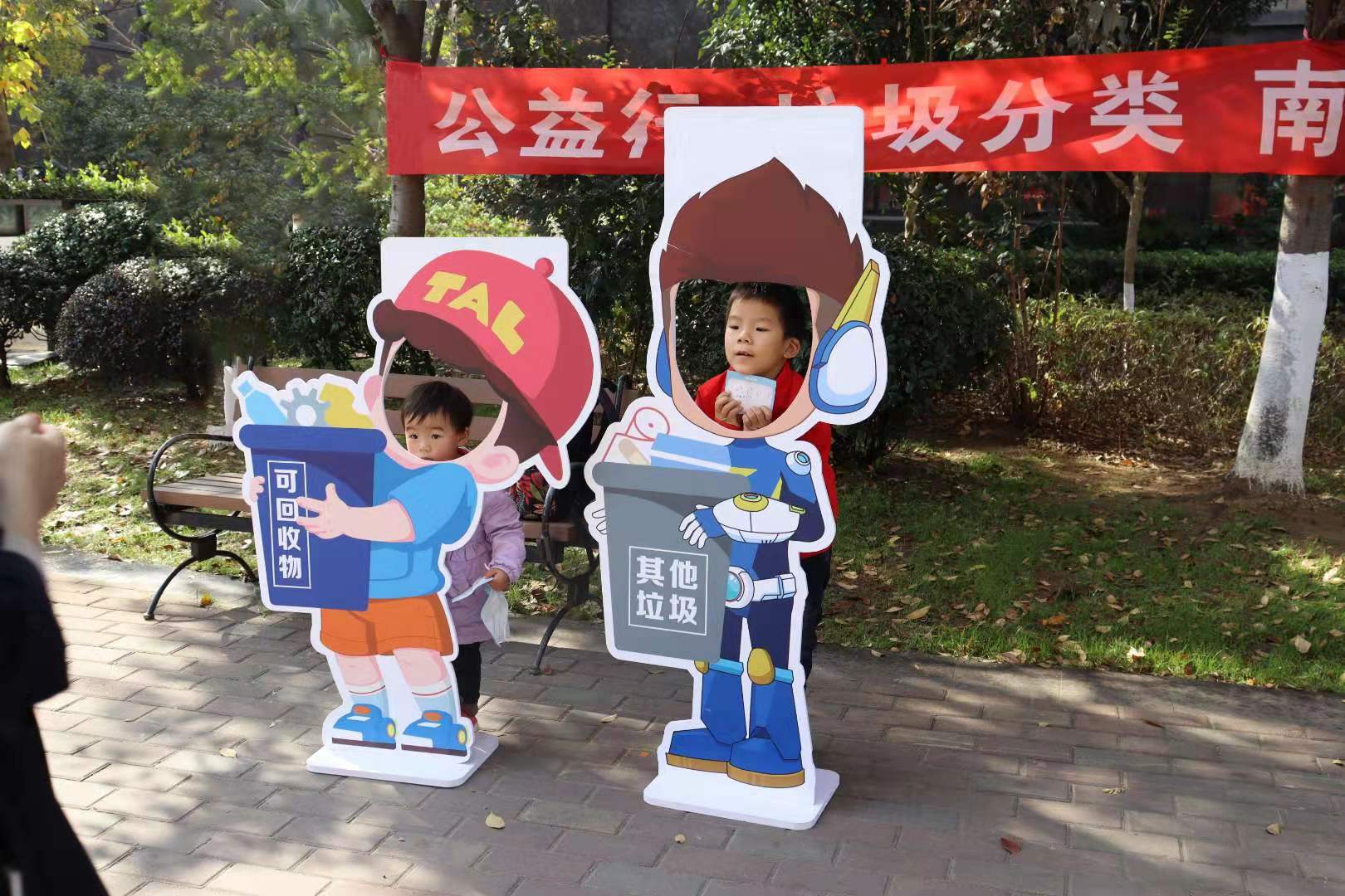 小朋友们可以和现场的卡通人物合影,并加上一句宣传垃圾分类的标语后发在朋友圈。