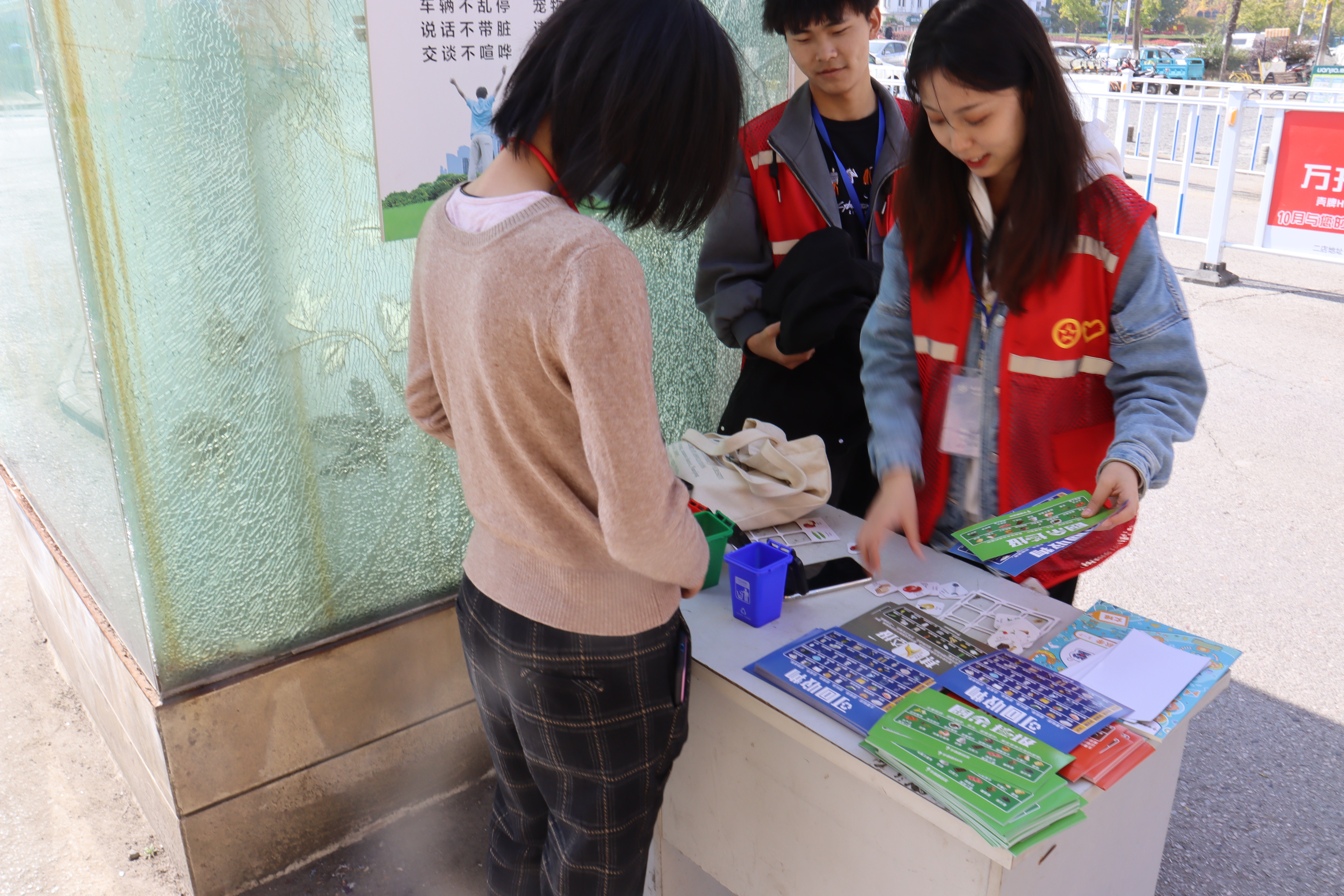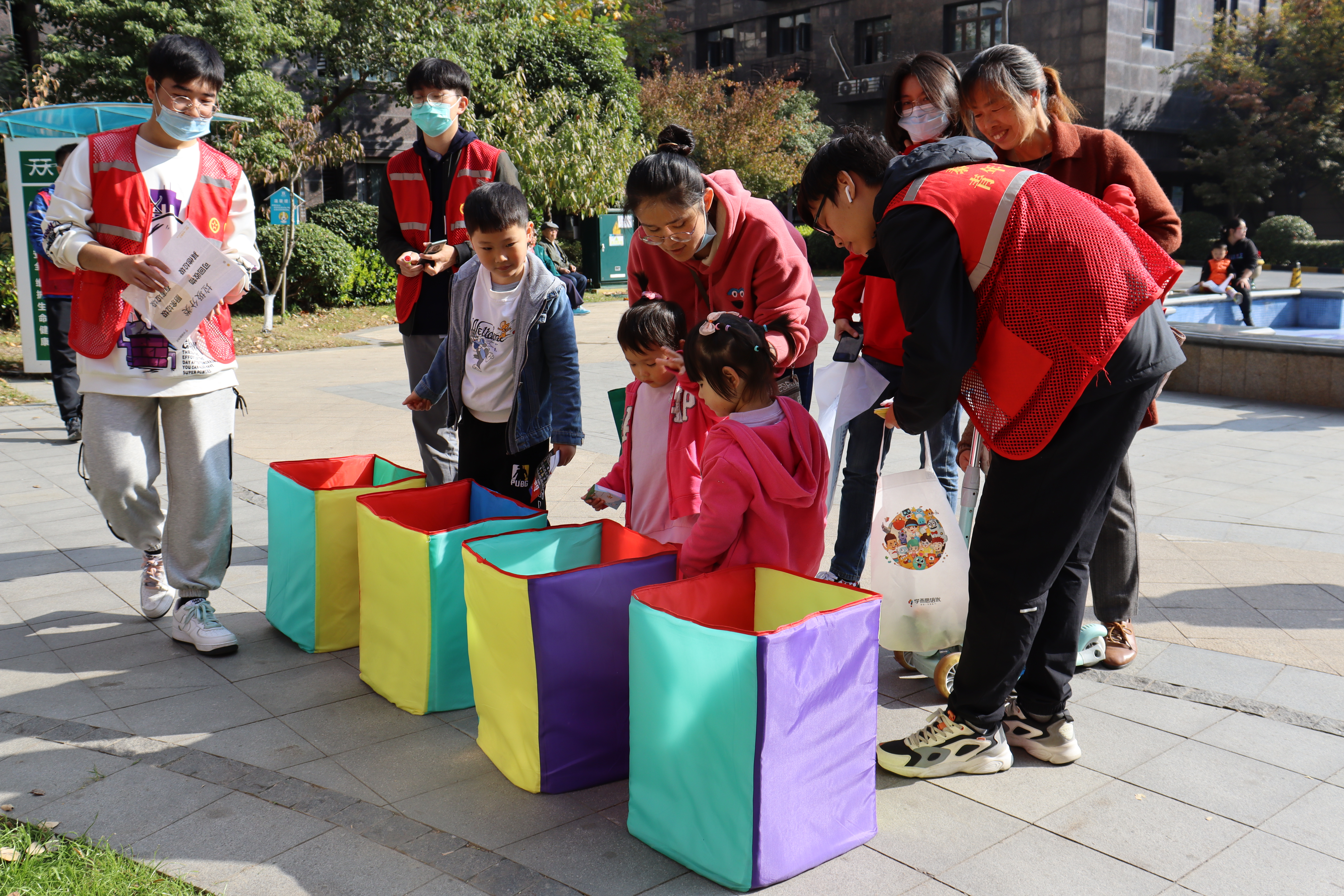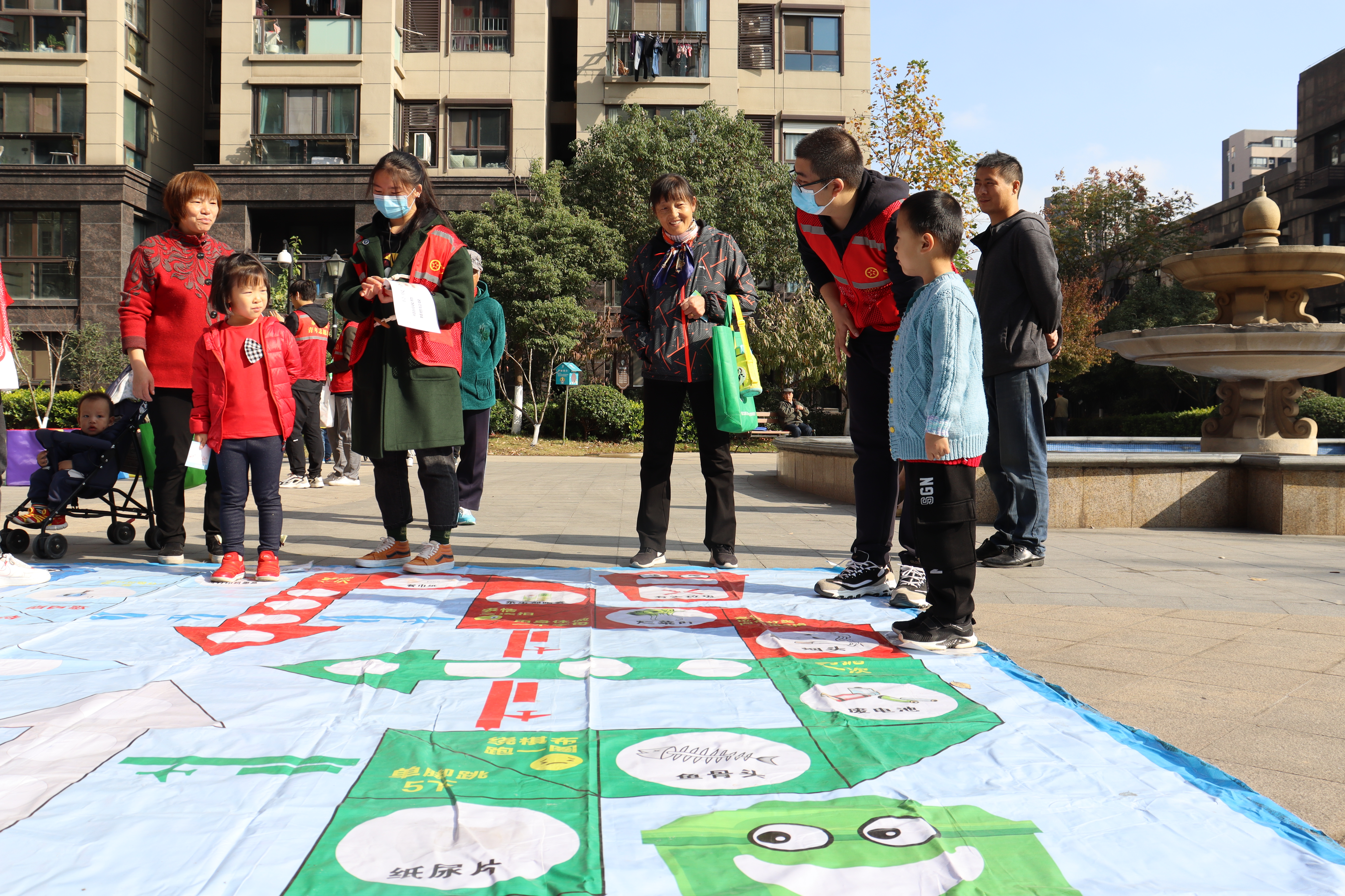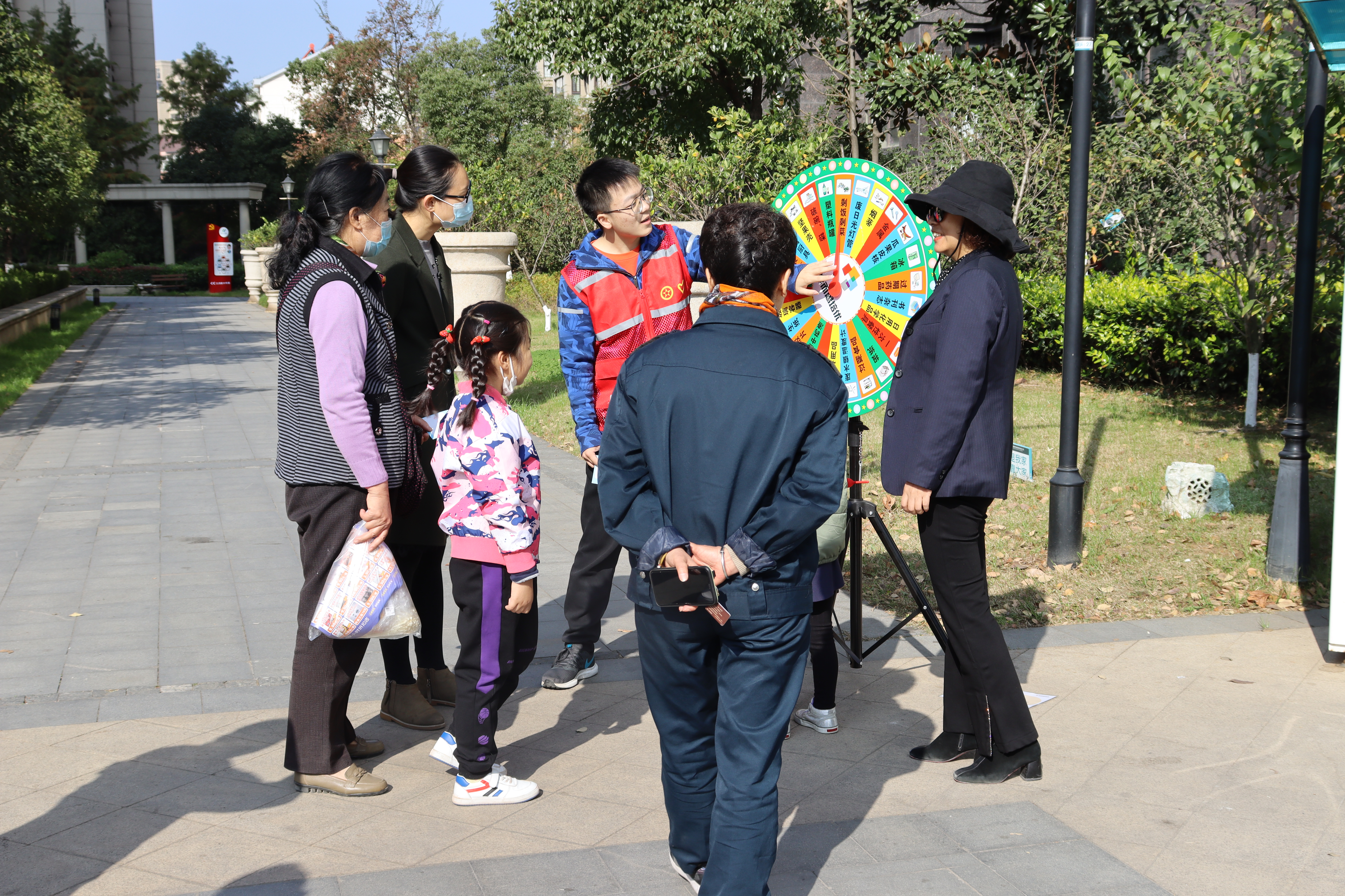 在11月14号的第二次活动中,志愿者们的主要工作是在大华社区江月府小区内的广场上摆设游戏摊位,并在江月府小区的周边宣传本次活动并分发垃圾分类的贴纸,吸引更多的人来参加。下面让我们一起来看看小游戏都有哪些内容吧!