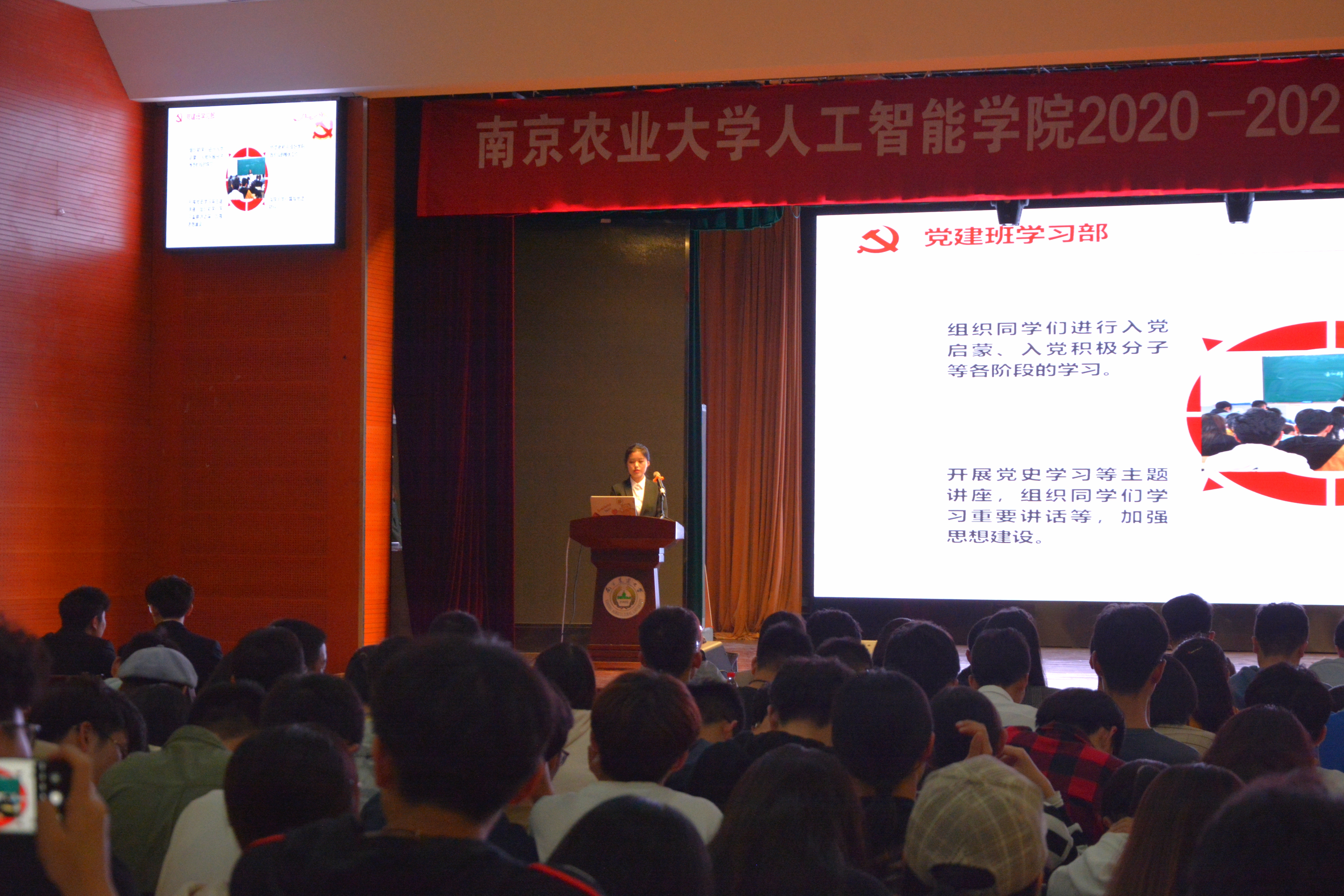 学生干部任用名单。随后,分党校秘书长王雨祺、院团委学生副书记王禹博、院学生会主席钟佳晨、全媒体中心主任李启源、AI工作坊主席仝曦熳依次上台,介绍了各部门职能及工作安排,并宣读了副部及以上的成员名单。最后,进行大会第五项,全体起立,奏唱中文色情