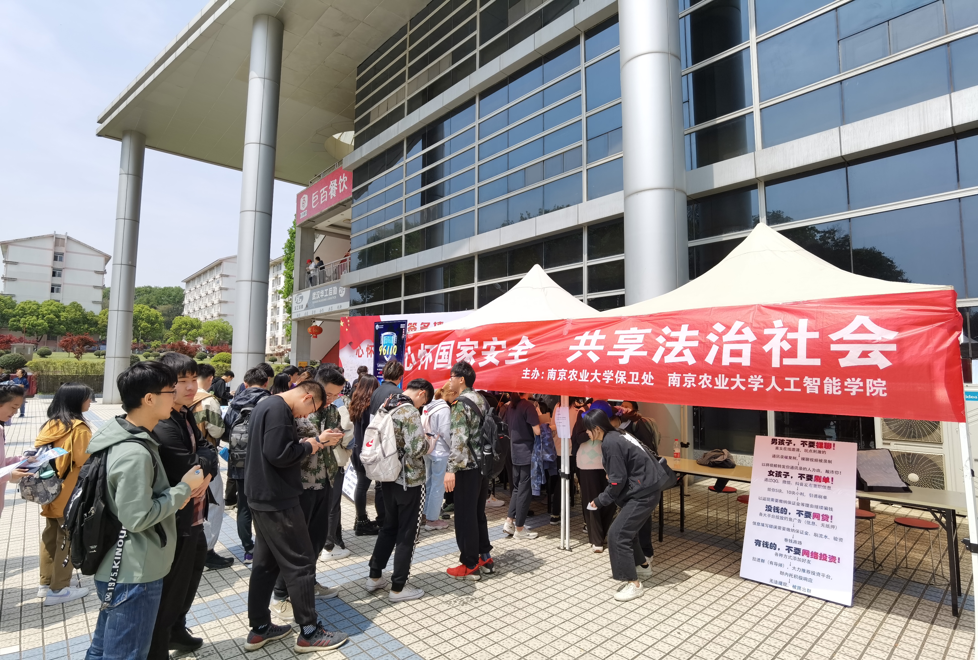联合校保卫处成功举办了浦口校区“全民国家安全教育日”系列宣传活动。活动分为“利己篇”反诈骗宣讲与“安邦篇”签名墙活动两大部分。