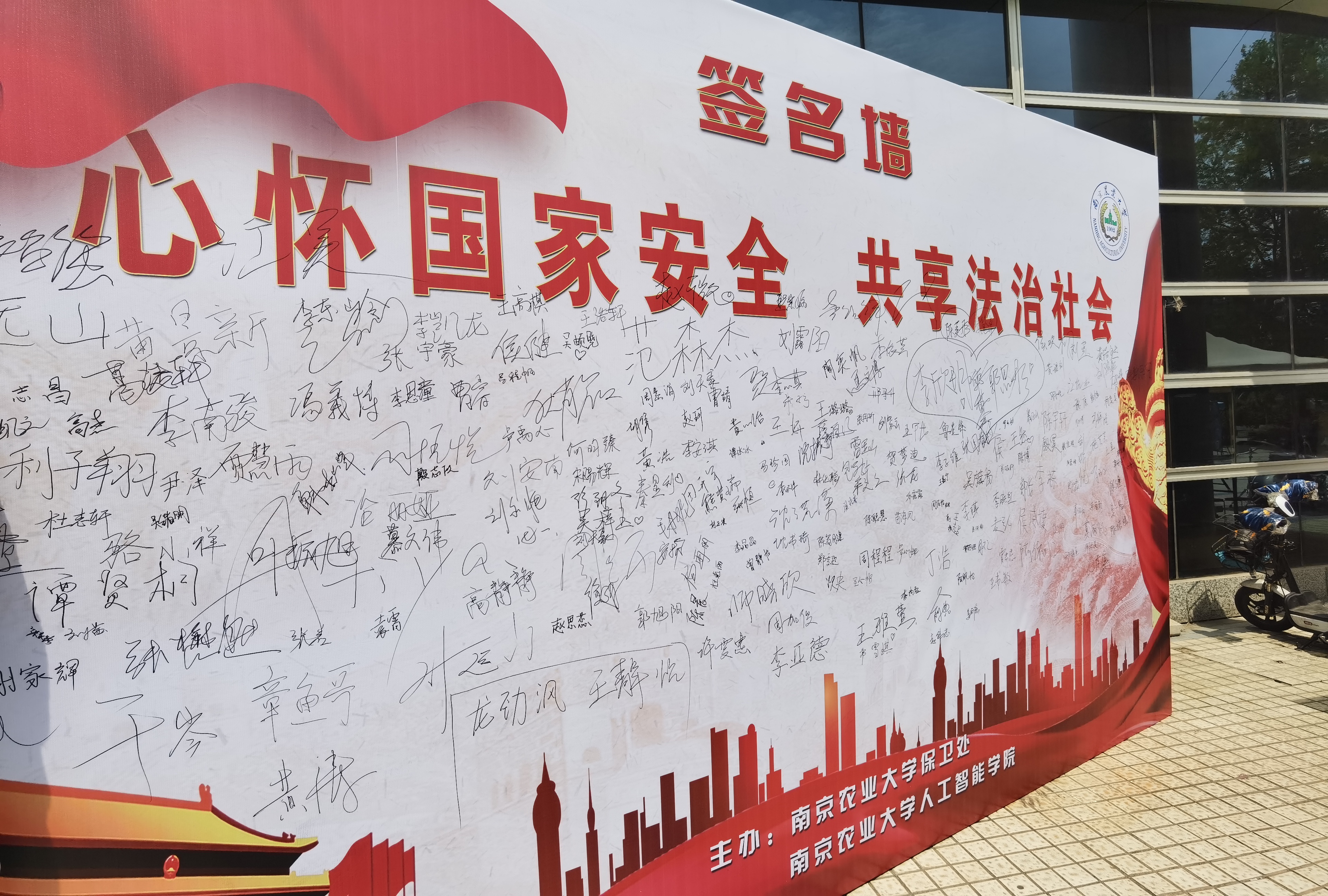 相关负责老师参与活动互动,积极解答师生问题。活动现场人潮涌动,数百名同学积极参与了关于国家安全知识的问答游戏,完成后,参与者们纷纷在签名墙上留下了自己的名字并拍照留念。