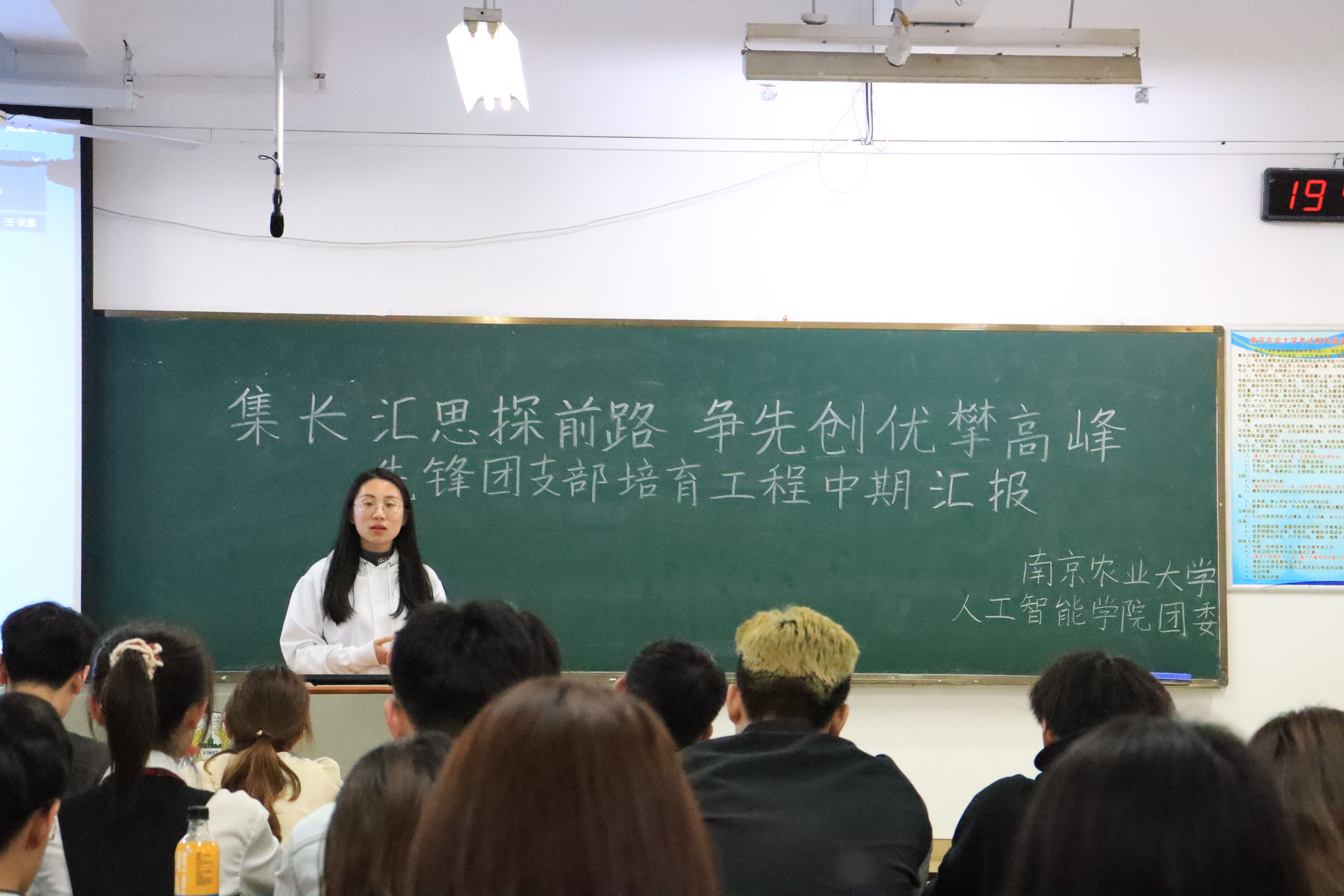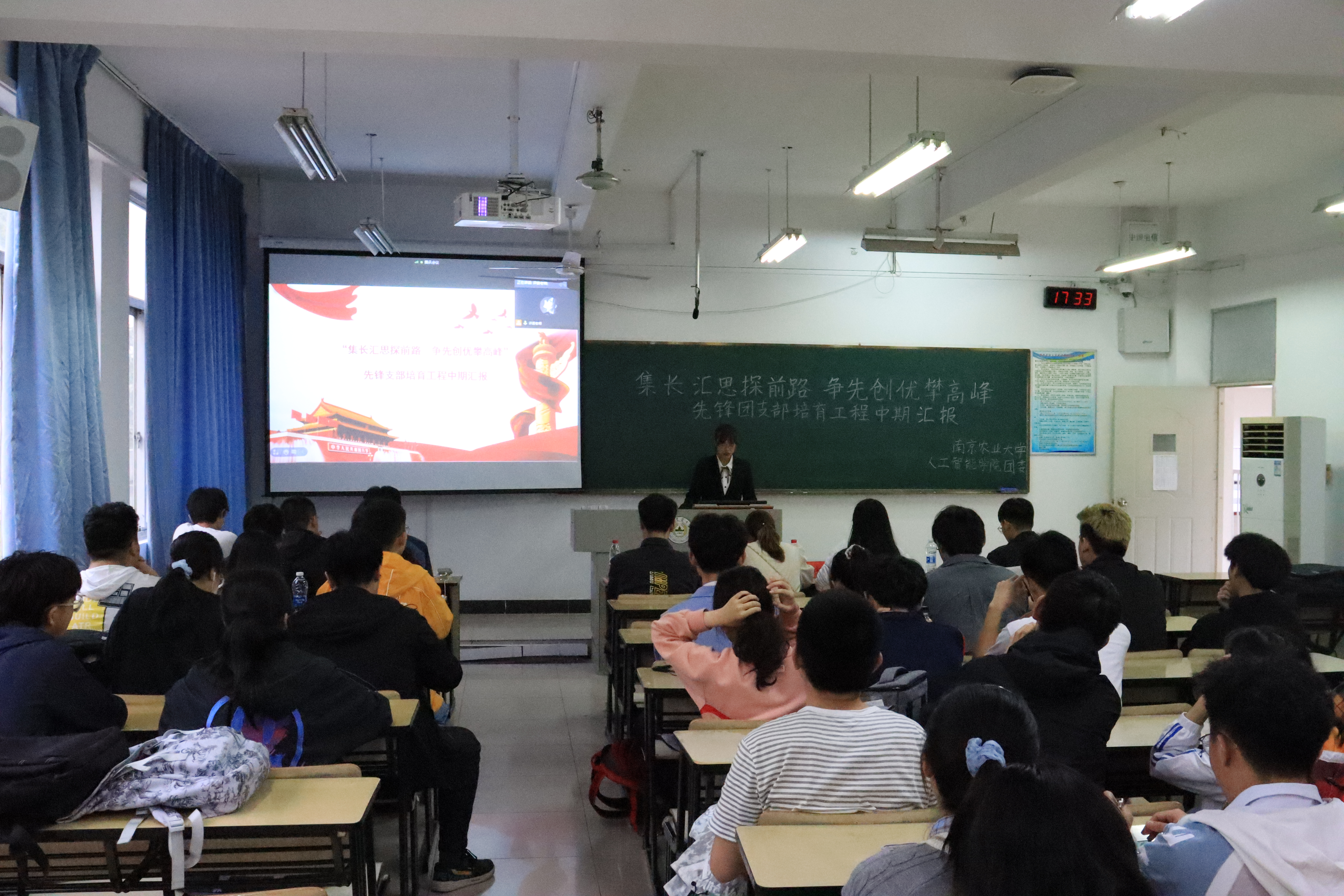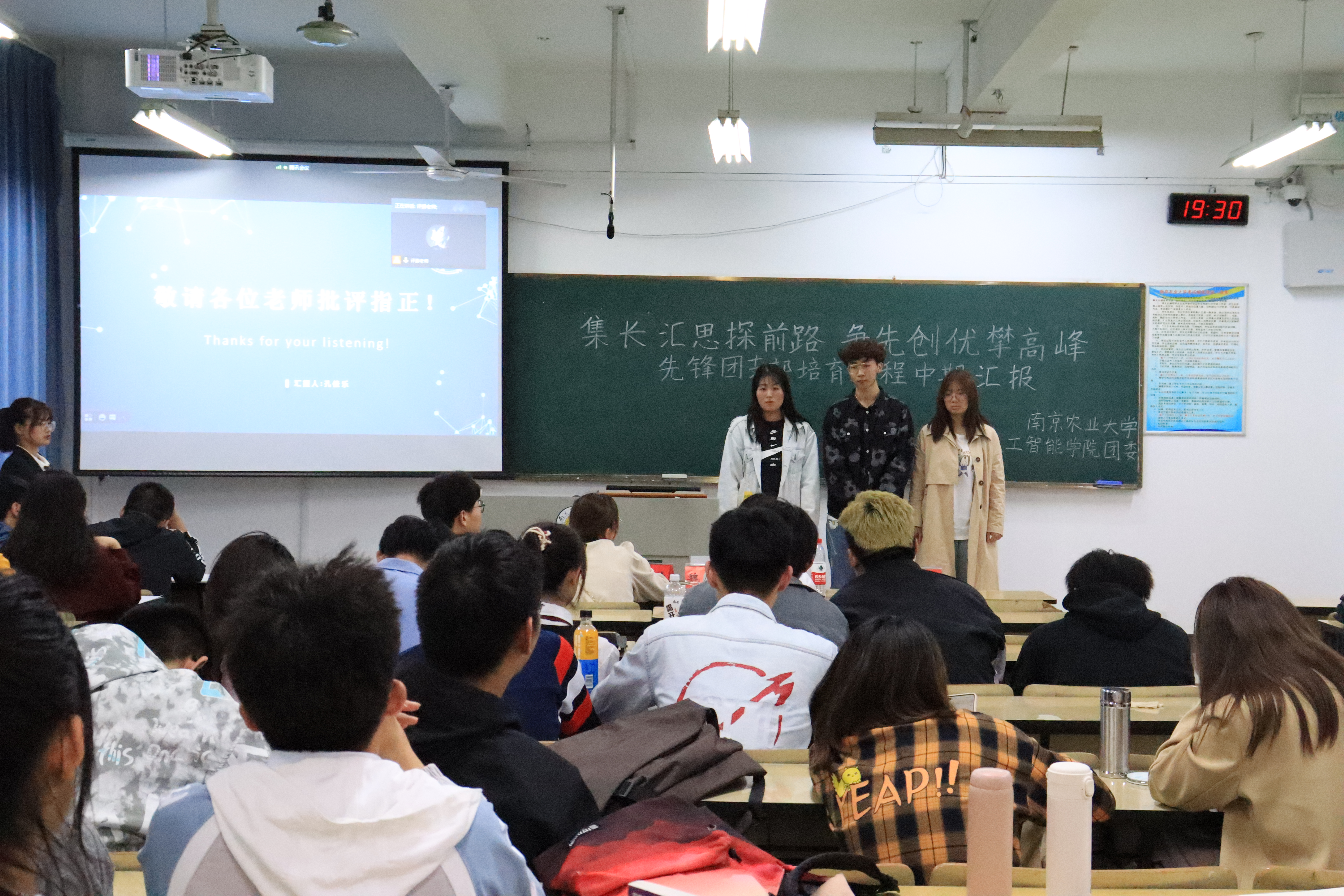 在汇贤楼B203举办“集长汇思探前路,争先创优攀高峰”先锋团支部培育工程中期汇报,活动由中文色情