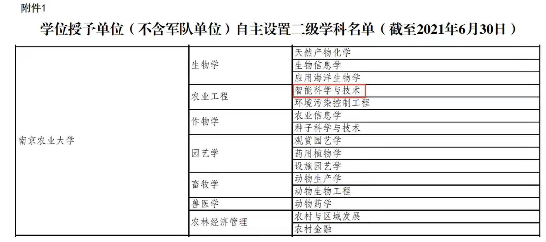 在农业工程一级学科下自主设置的“智能科学与技术”二级学科正式获批设立。