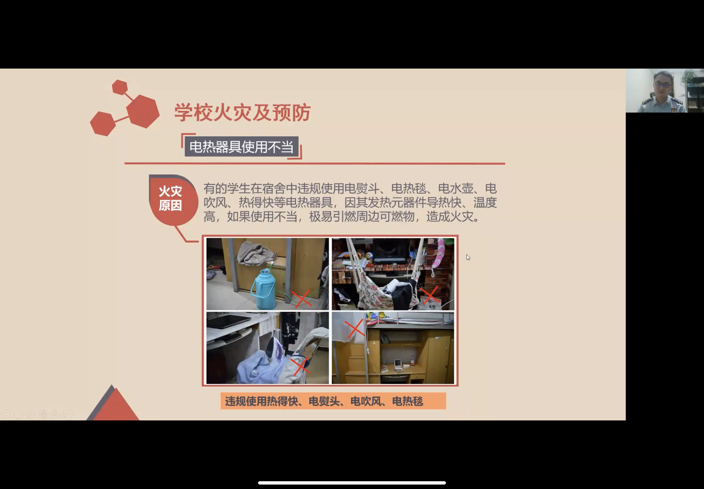 本次讲座旨在让同学们对消防防火安全有一个更加深刻的理解,时刻在脑海中敲响警钟。同时,也提醒同学们要学会保护自己和他人的人身安全,掌握相关的消防安全知识,做到面对火灾从容应对,安全撤离。
