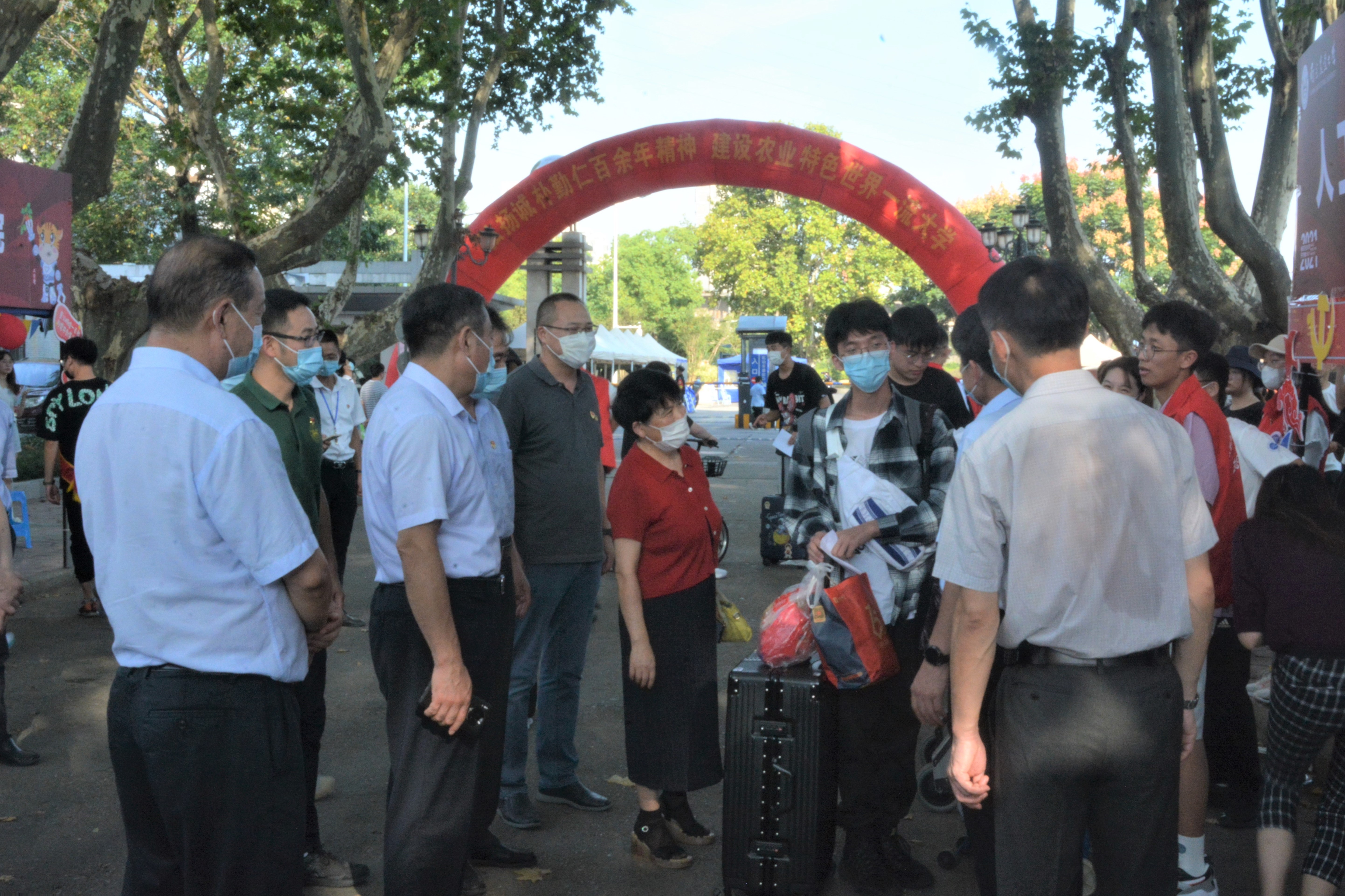 学院党委副书记(主持工作)沈明霞、党委副书记卢伟、副院长刘杨,以及相关部门负责同志来到新生报到现场慰问工作人员、指导迎新工作。在每个迎新点详细了解迎新工作流程和进展,亲切慰问各学院迎新接待工作人员和志愿者,对他们的辛勤付出给予了充分肯定,并叮嘱要做好自身防护,强调要在做好疫情防控的前提下,尽心尽力做好服务工作,确保每一位新生都能及时、顺利报到。沈明霞等人还来到学生宿舍与新生亲切交谈,介绍学校相关情况,了解新生实际需求,为广大新生开启崭新的大学生活送上美好祝愿。