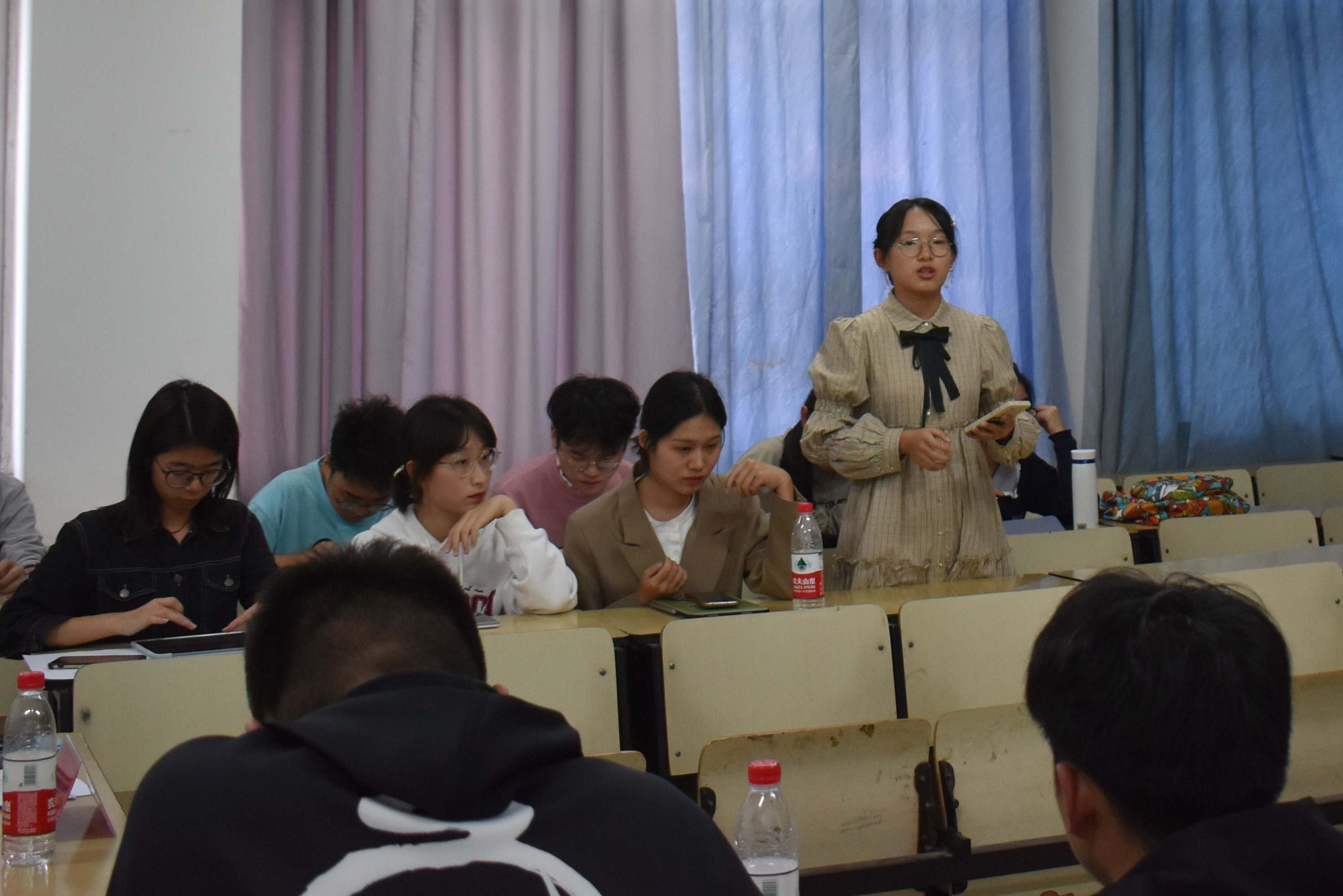 会议开始,魏宇宁首先讲述了开展本活动的目的和意义。随后,大二各班团支书就团支部工作机制建设、学风建设、文化建设等方面,为一年级团支书分享经验。大一各班团支书就如何开展有效学习,如何让同学认识到参与班级活动的重要性等方面提出疑问,大二各班团支书根据自身经验为尚存疑惑的团支书进行解答。为更好地帮助各班班委高效进行班级建设,魏宇宁就此问题提出了自己的见解,她指出管理同学应宽严并济,根据同学兴趣开展活动等,同学们受益匪浅。活动最后,魏宇宁向大家介绍了学院近期开展的活动,鼓励各班班委积极带动班级同学踊跃参与。至此,本次会议圆满结束。