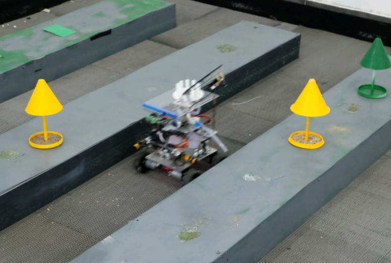 经过短暂的休整,B类比赛如期而至,比赛共分两轮淘汰赛。第一轮为在规定时间内完成跑道,经过紧张角逐,多组选手成功晋级。第二轮难度升级,各组选手制造的机器人在完成跑道的同时,用最短的时间完成施肥功能。淘汰赛结束后,由评委老师对选手的设计的机器人进行点评并提出修改建议。本类比赛共评选出一等奖一名,二等奖三名,三等奖三名。