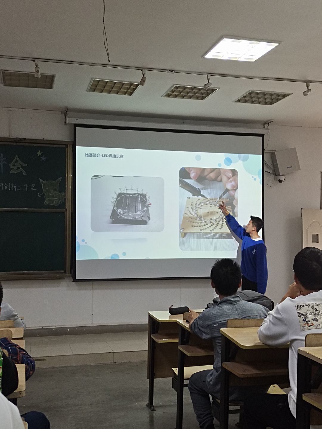 在比赛初期,嵌入式物联网创新工作室以宣讲会的形式向参赛选手介绍了比赛的相关内容和规则,并进行了焊接培训。让参赛选手对比赛有了全面的认知。