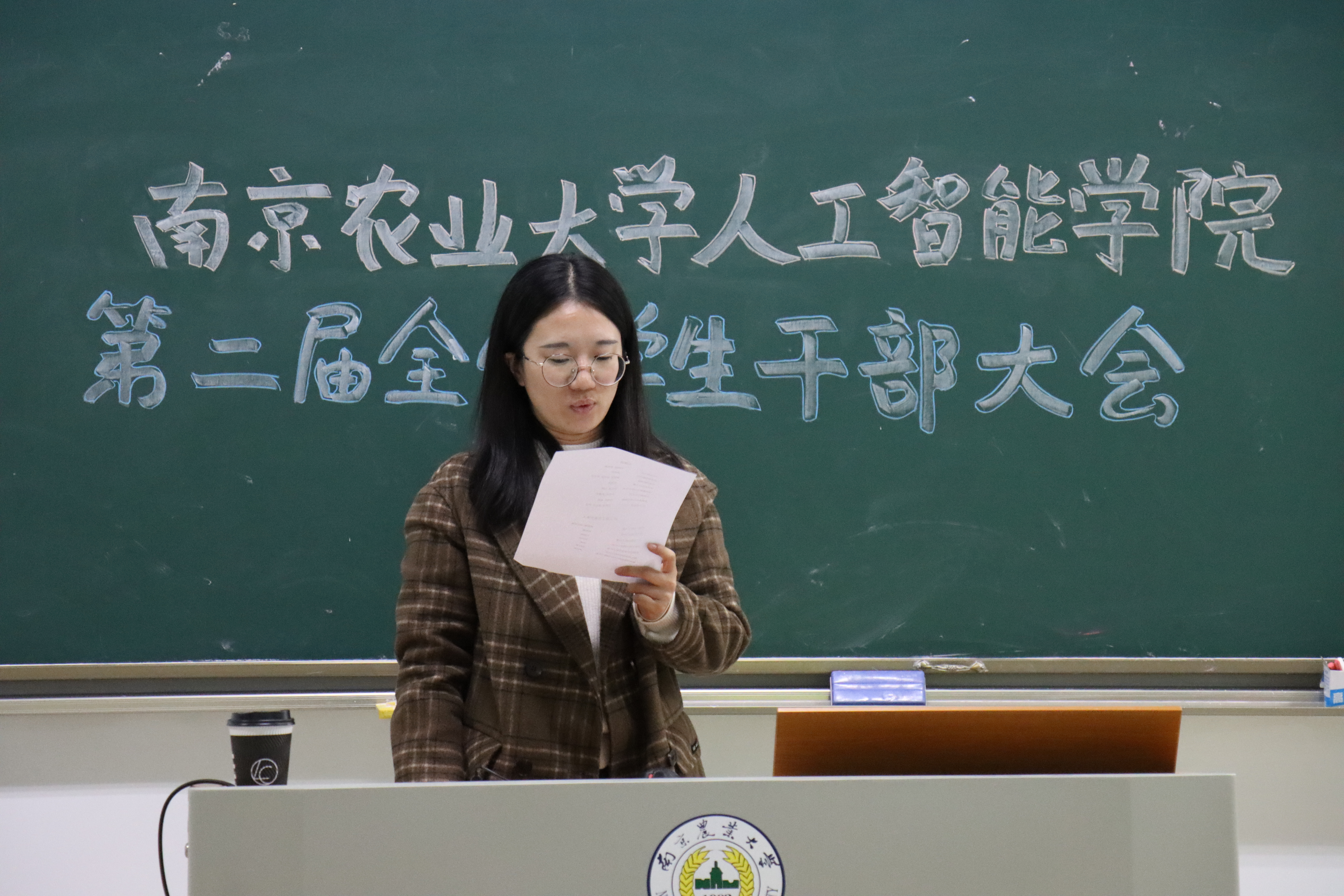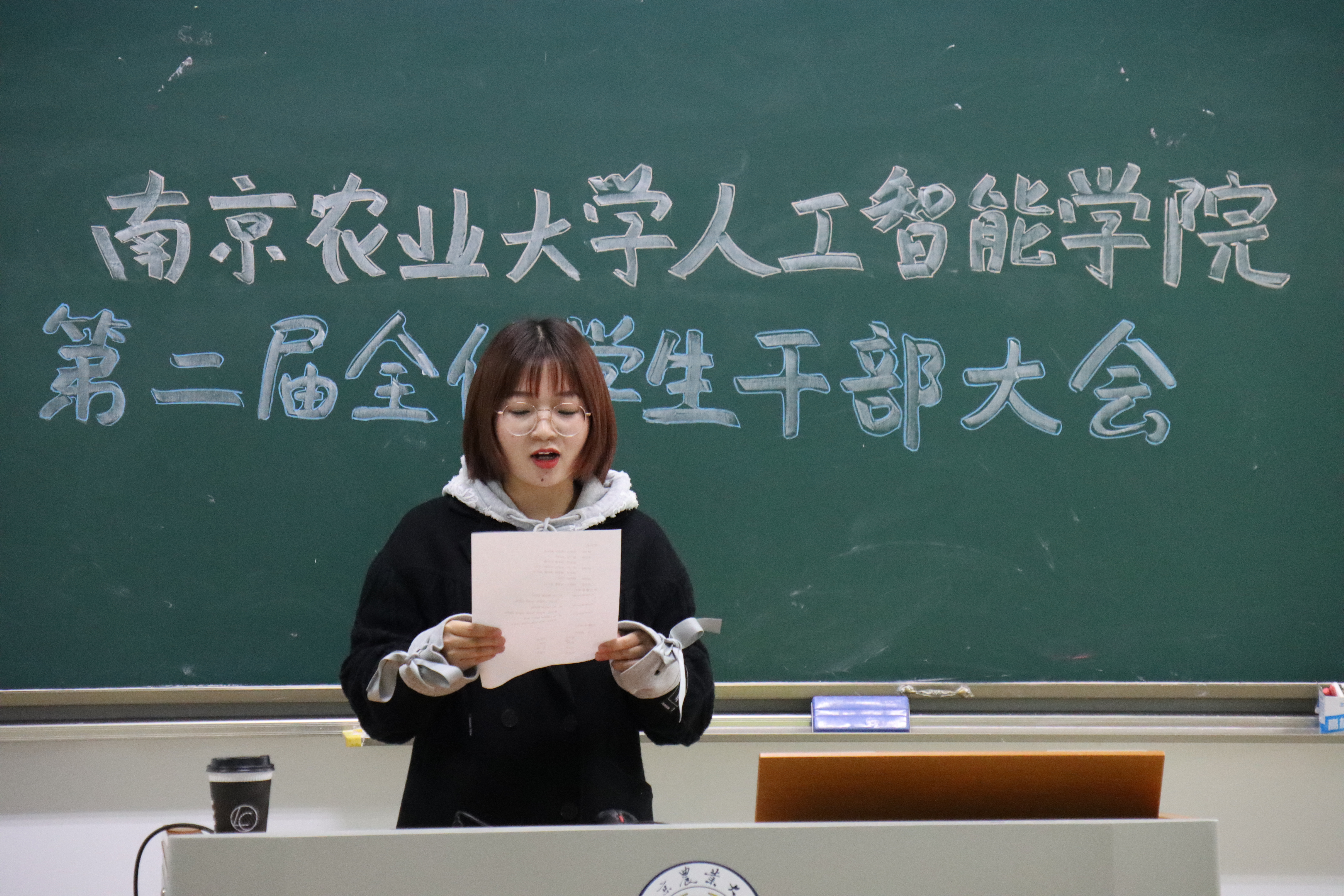 会议第三项由辅导员章棋、湛斌、魏宇宁及邬晓倩宣读学生干部任用名单。伴随着老师们庄严的宣读,学生干部愈发感受到自身的责任感与使命感。