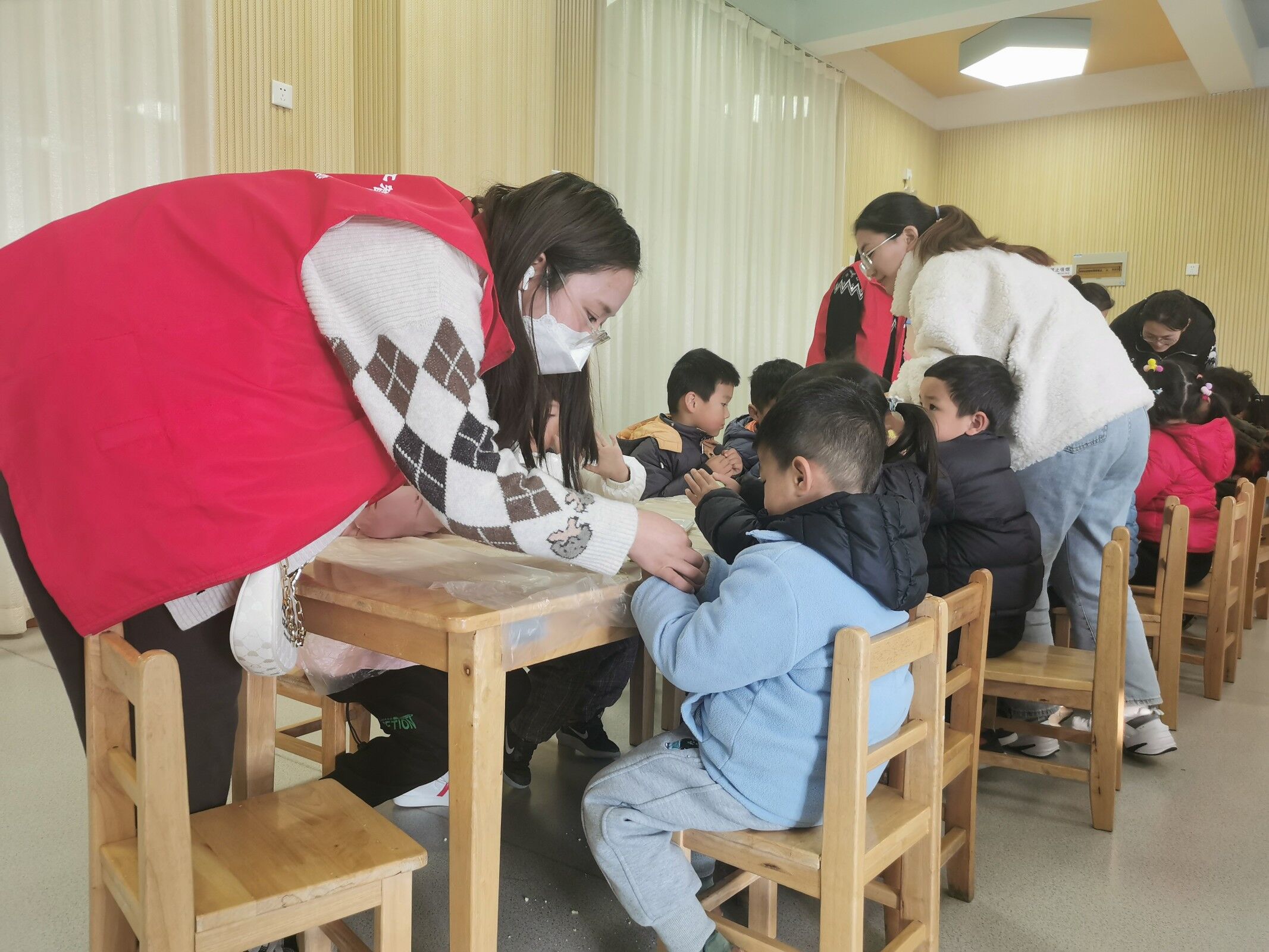 团委举行了“冬至日——点将台幼儿园志愿服务活动”,青协红会的志愿者们前往点将台幼儿园,与小朋友们一起共度冬至。希望能够通过此活动,弘扬传统文化,让小朋友们对冬至日的来历、习俗有所了解,锻炼其动手能力。