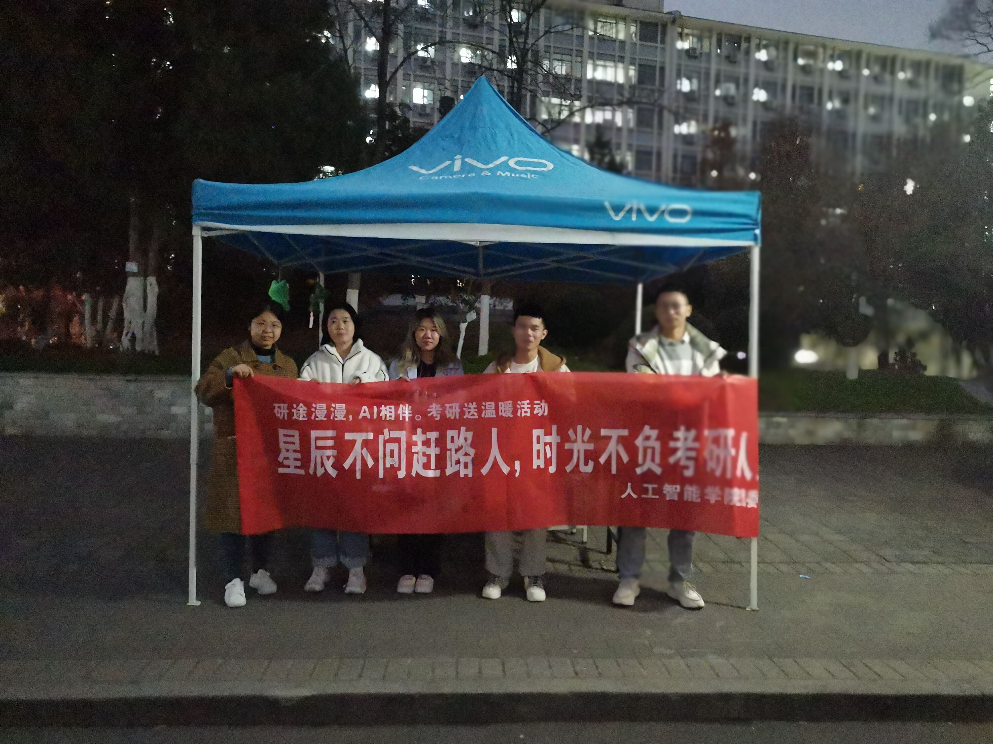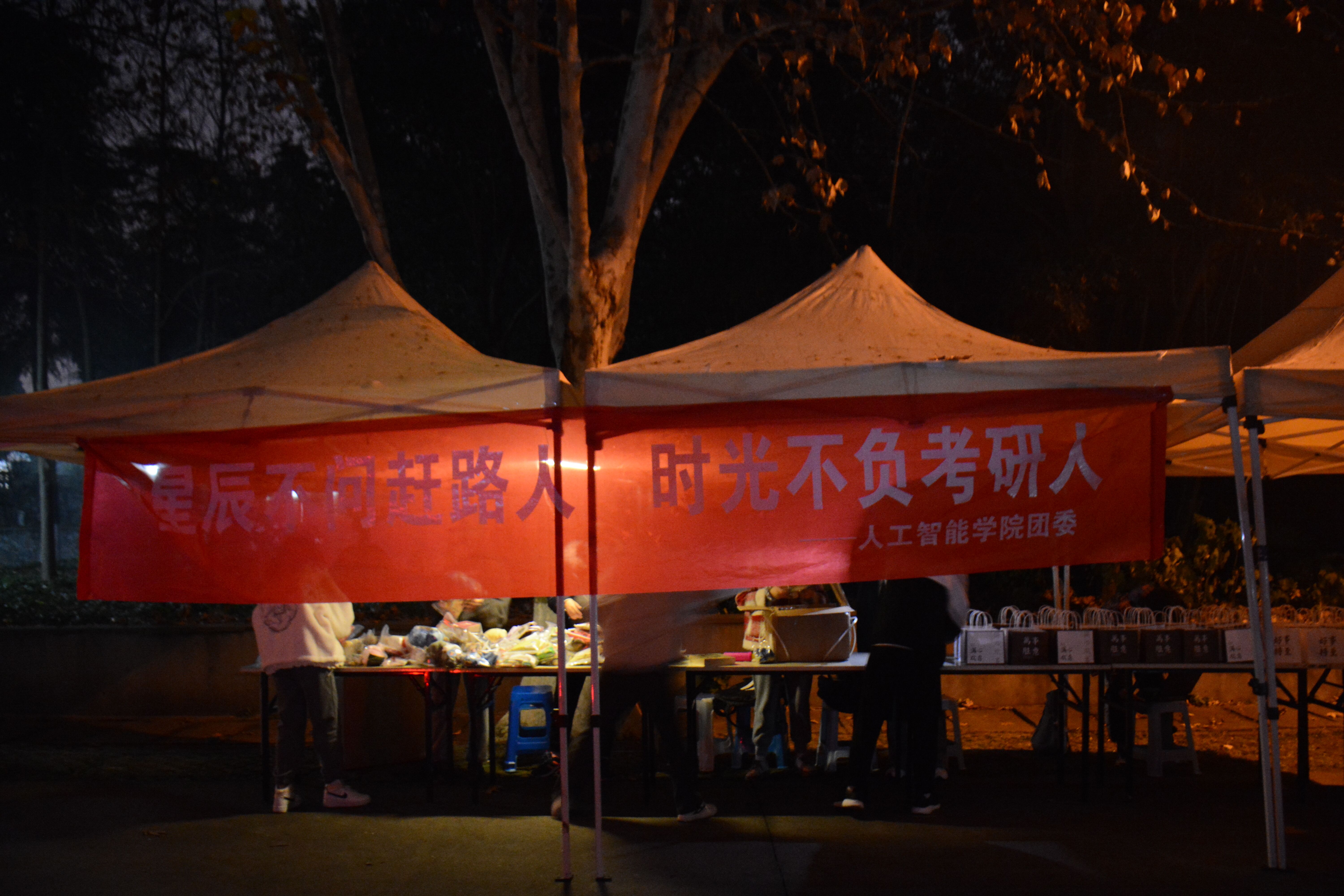 团委分别在浦口校区的润泽园广场、图书馆门口和勤学楼门口以及卫岗校区的玉兰路举办了“研途漫漫,AI相伴”考研送温暖活动。