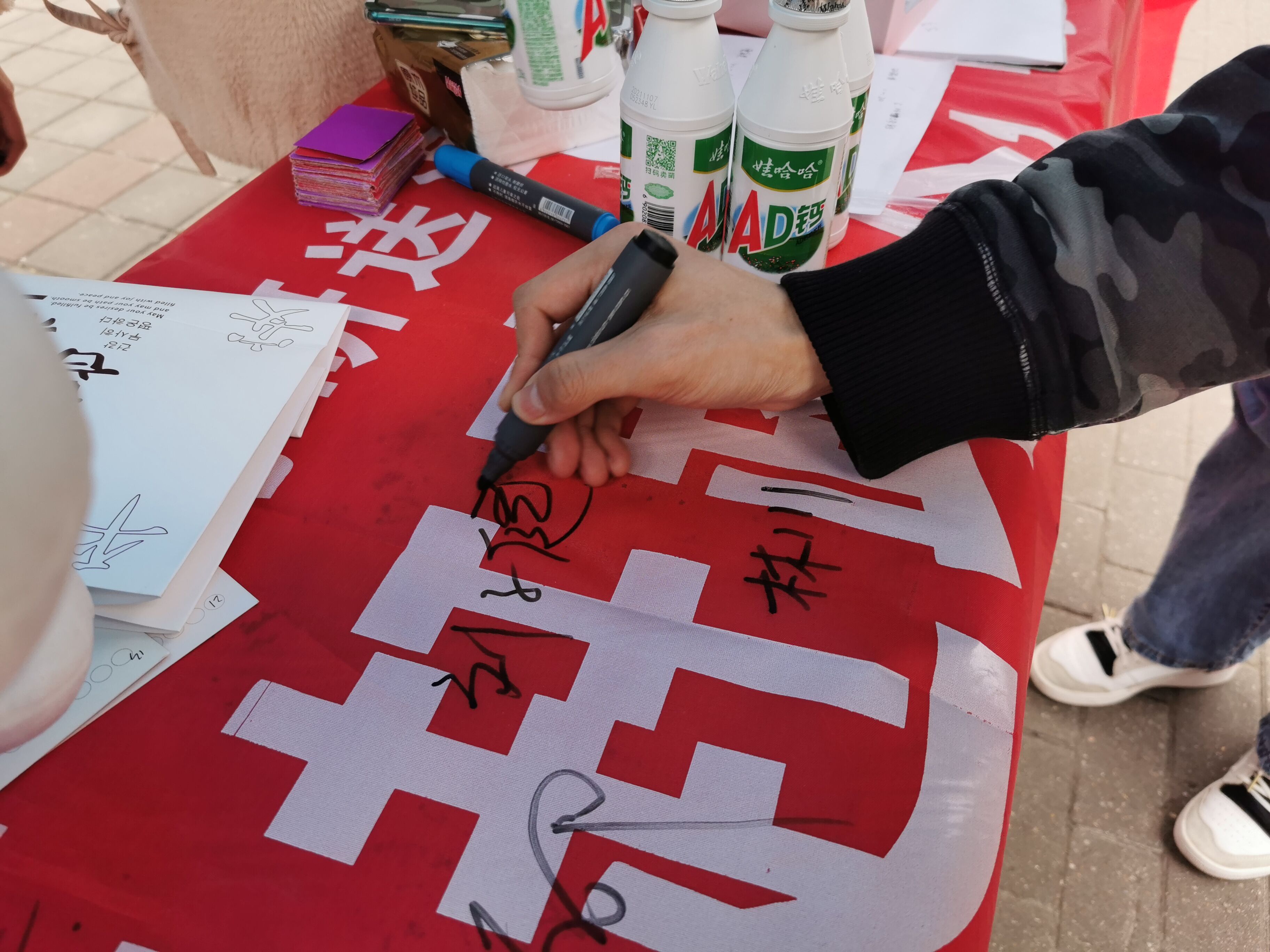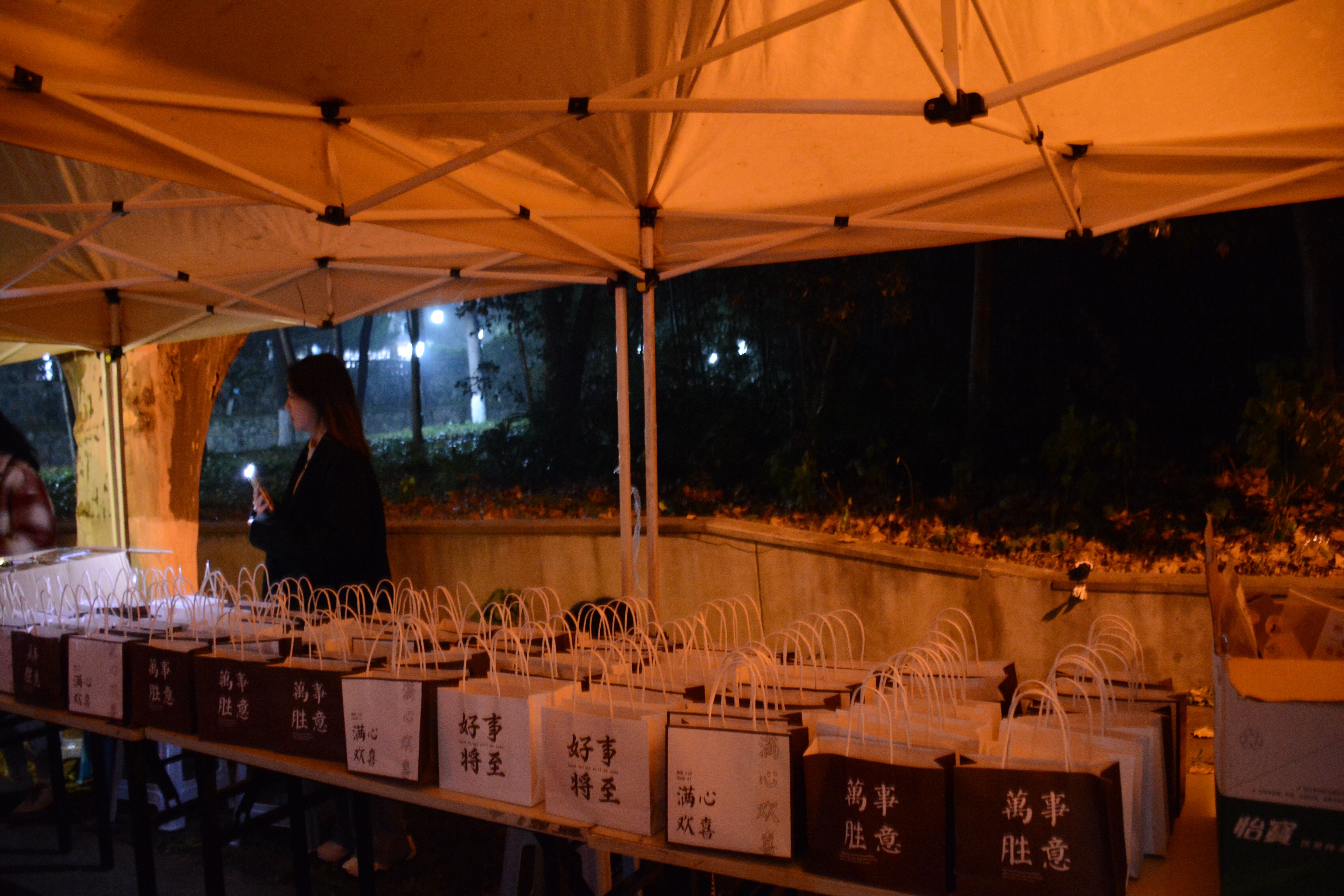 本次活动大致分为广宣收集礼物和送礼物两部分。12月8日中午,两校区的同学们分别在玉兰路、润泽园广场的帐篷处填写报名表并领取一张明信片。活动现场气氛火热,同学们满怀心意,在明信片上写下他们内心对考研学子们最诚挚的话语与祝福。紧接着,同学们精心挑选一件暖心的礼物,配上精心制作的明信片并交回。完成礼物收集后,工作人员分别于15、16日,在卫岗校区玉兰路、浦口校区图书馆和勤学楼门口进行送礼物活动。礼物分为固定礼物和随机礼物两类,固定礼物包括糖果袋、暖宝宝、明信片、旺仔牛奶等,随机礼物采用刮刮卡的形式决定。收到小礼物让学子们在紧张枯燥的备考之余深深感受到来自学院的关爱与温暖,明信片上祝福的话语更加坚定了同学们备考的自信和决心。