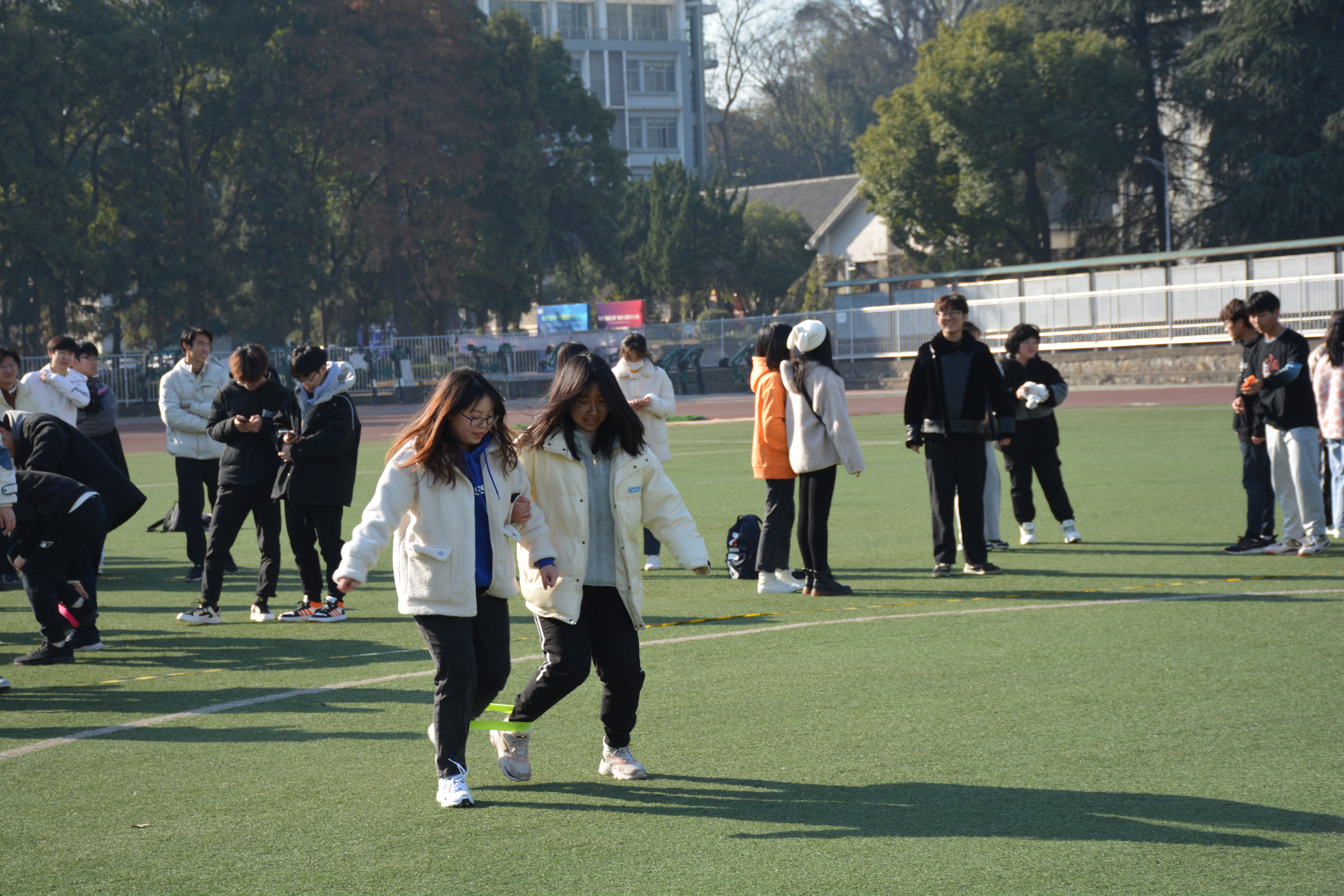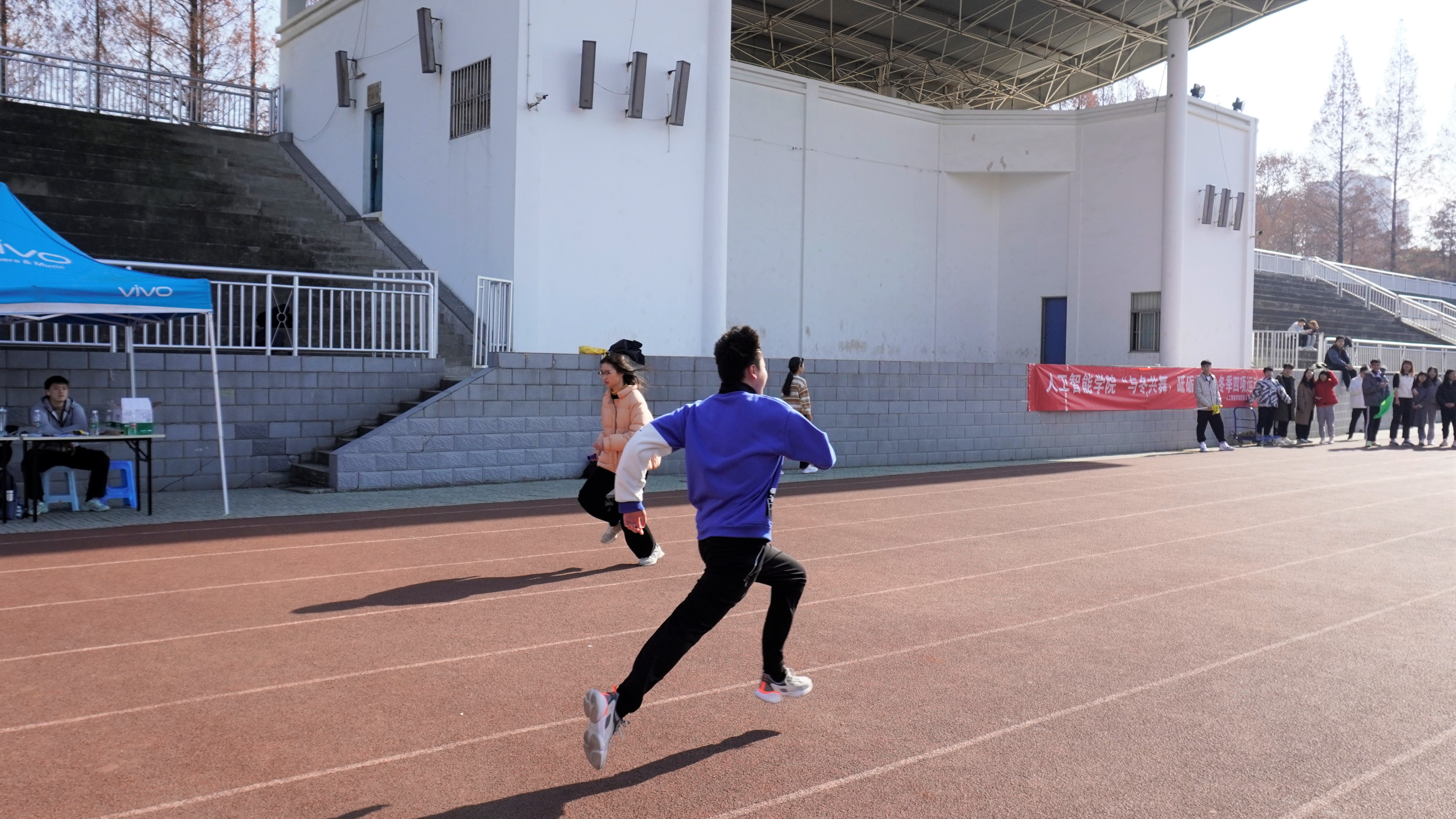 虽然天气寒冷,但驱不散同学们参与比赛的热情。拔河比赛过程异常激烈,参赛队员一个个精神抖擞,专注沉着的握着手中的绳索,似乎心里有着必定拿下冠军的决心。50米迎面接力项目中,随着裁判的一声哨响,各支队伍纷纷为比赛者们加油助威,一声声加油催动着参赛者快速前进。整个运动会既充满趣味性,又充满了挑战性,每个人都体验到了运动的快乐、竞争的乐趣、参与的欣慰与获奖的荣耀。12:00比赛项目全部结束,大一计科与数据专业联队荣获本次活动第一名,大一电信2109/2110班与人工智能211/212班联队获得第二名,大二电信联队获得第三名。