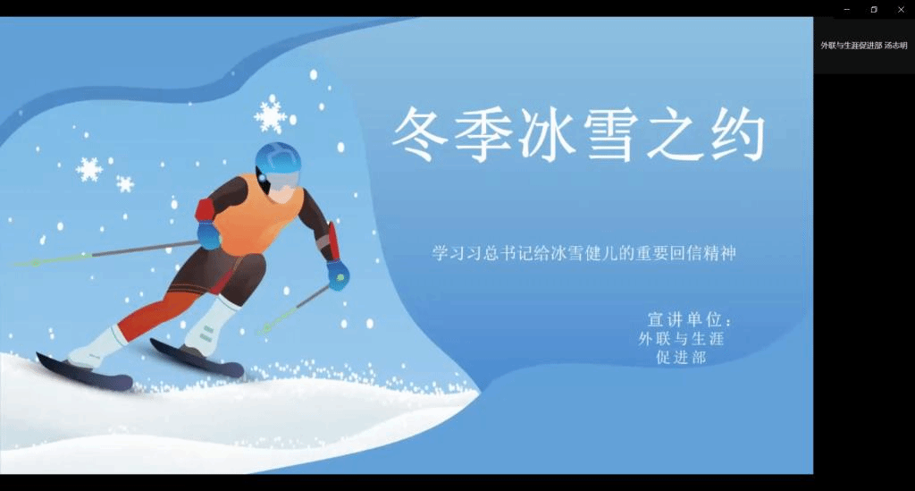团委于线上举办“学习冬奥精神,激扬青春之歌”学习习近平总书记给中国冰雪健儿的重要回信精神讲座,此次活动面向浦口校区全体学生。