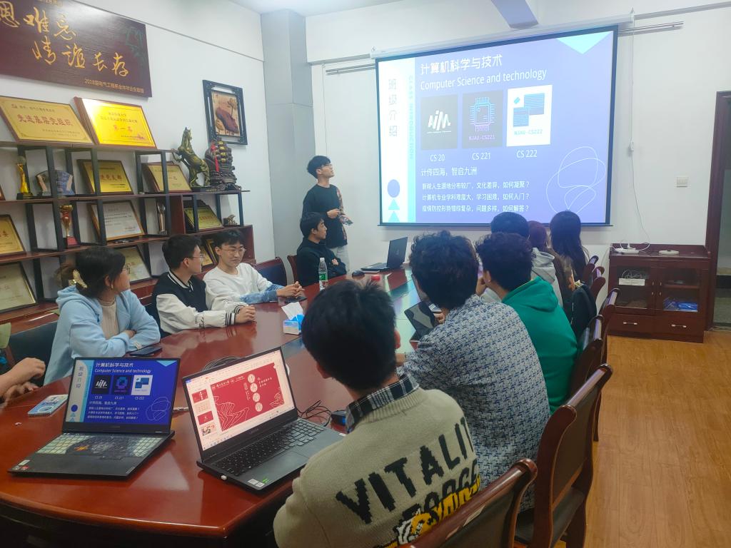 会议开始,计科221班团助夏烨和计科222班团助司恒恺首先分享了如何增加新生的归属感、工作开展过程中遇到的主要问题和应对措施等。随后数据221班团助李源和数据222班团助罗钰晟展示了工作日程以及与新生的互动经历和在此过程中的问题、反思和心得。紧接着,人工智能221班团助李志远、人工智能222班团助郭竞夷着重介绍了近期的工作进程和活动开展情况。最后,电信类2201班团助杨佳、2202班团助徐聪、2203班团助汪叶鑫、2204班团助华婧伊、2205班团助韩晓飞、2206班团助宋文豪、2207班团助茆子阳进一步对工作总结、工作经验、工作问题与工作展望进行了详细的叙述与补充。会议过程中,多位团助提到了对新生进行大学生活与学习规划的辅导,并对专业培养方案进行了详细讲解。