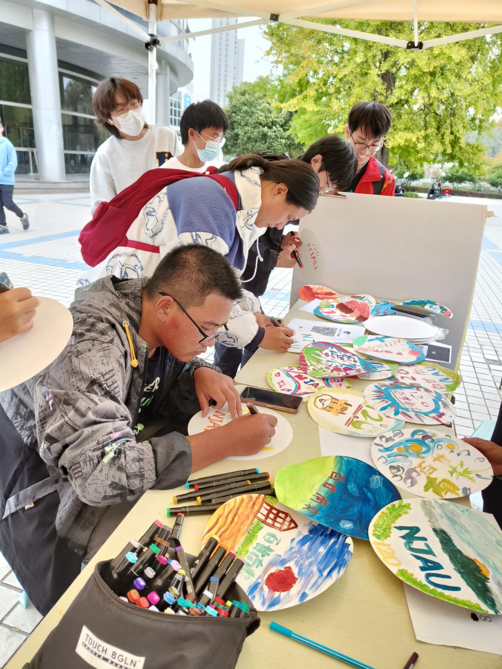 在整个活动过程中,宣传部成员尽心、精心组织,在润泽园广场前现场分发绘制材料,指导同学绘制。活动期间,浦口校区的学生们热情高涨,挥毫泼墨,在绘制中尽情的释放艺术创造能力,现场氛围热烈,活动成效良好。随后,院团委在提交的30份作品中遴选出了5份优秀作品,邀请绘制者至操场参与飞盘投掷活动,在飞盘的飞扬中锻炼体魄,散发青春活力。