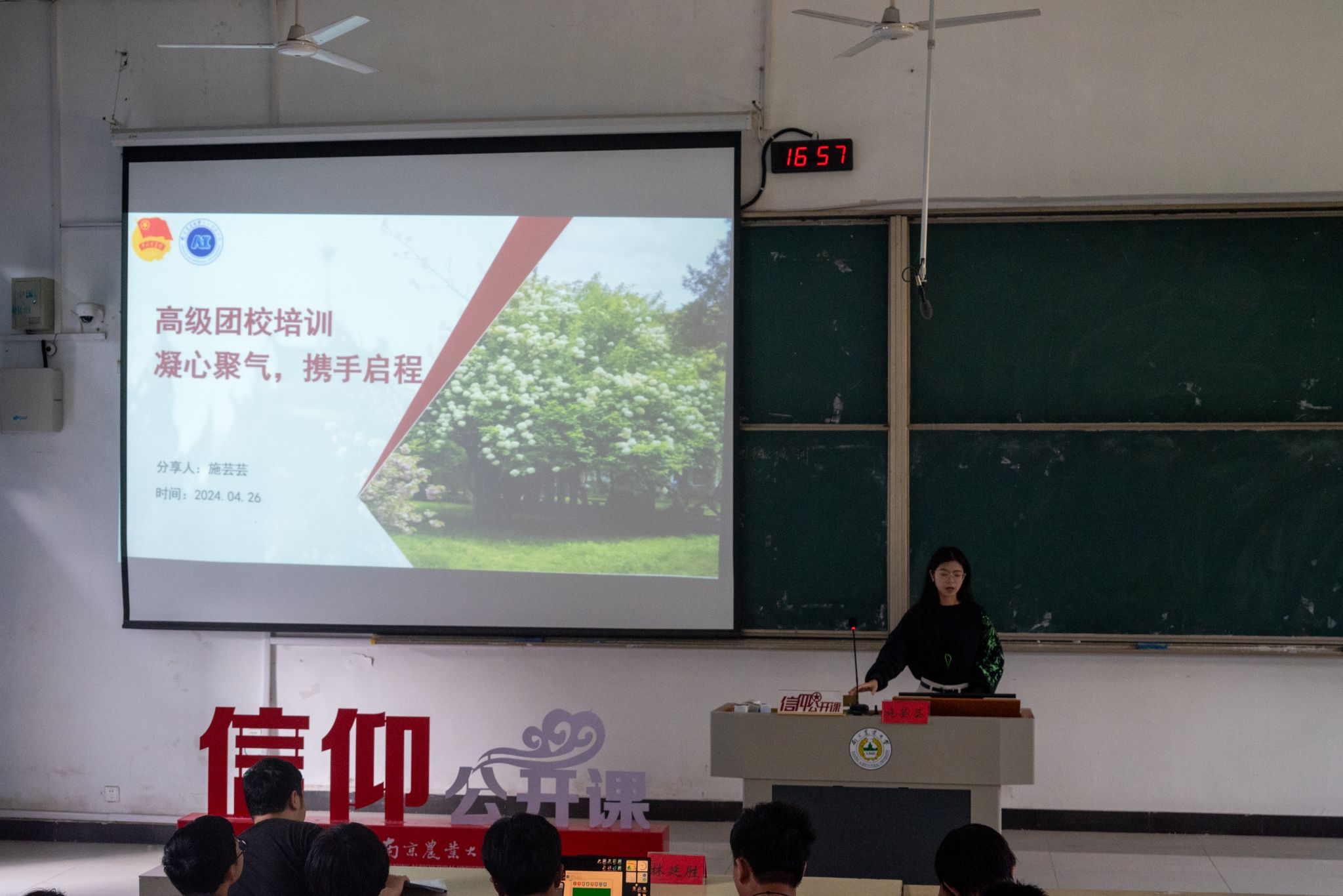 团委于2024年4月26日在浦口校区勤学楼举办了信仰公开课系列高级团校培训之“凝心聚气,携手启程”团队建设和职能传承分享交流会。人文与社会发展学院本科生辅导员林延胜,中文色情