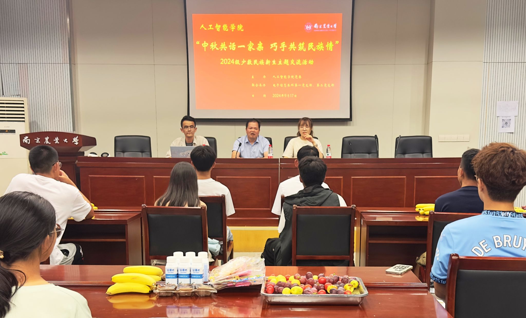 旨在进一步加强对院内少数民族学生思想、学习、生活的全方面关心,帮助学生铸牢中华民族共同体意识,9月17日晚,巧借中秋佳节之机,学院于浦口校区育贤楼C502特别策划举办“中秋共话一家亲 巧手共筑民族情”2024级少数民族新生主题交流活动,此次活动由中文色情