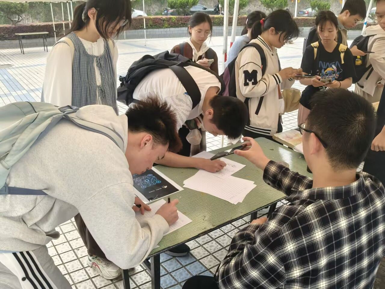 趣味诗词活动现场,同学们热情高涨。工作人员提前收集了与春天有关的词语写在手卡上。活动时,参与者依次抽取三张卡片,需在两分钟内根据词语快速答出相关诗句。同学们充分发挥文学素养,不仅引用古人诗词,还现场创作符合情境的诗句。成功答出两个及以上相关诗句的同学,当场获得了精美诗词书签和便签本。