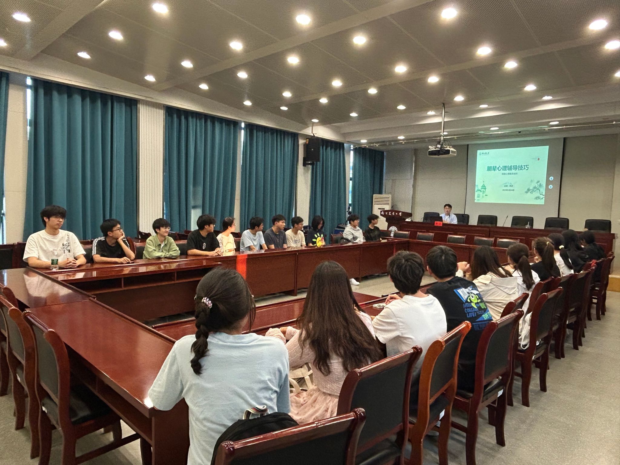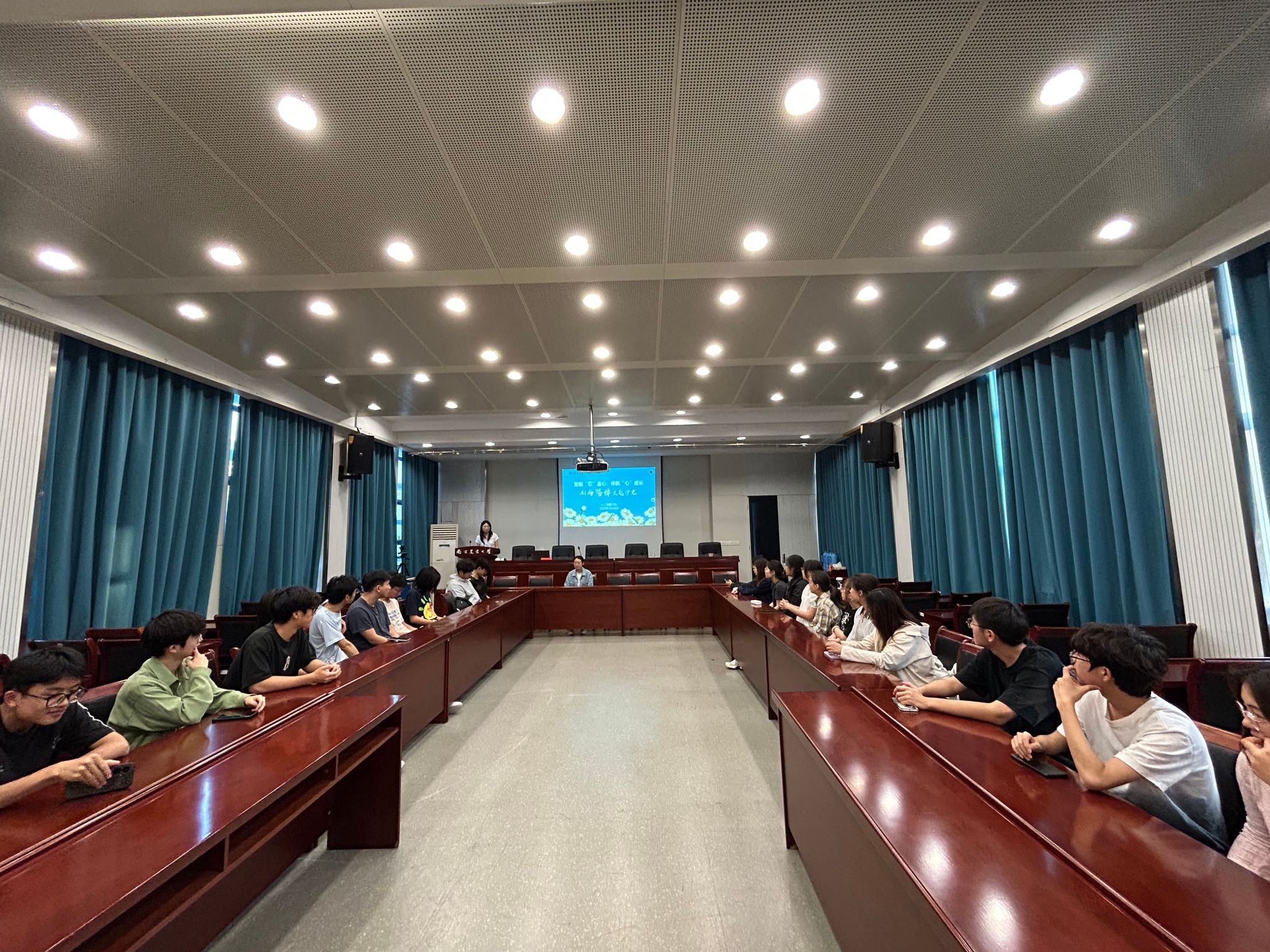 在浦口校区育贤楼C502会议室举办“智能芯连心,伴航心成长”AI与陪伴主题沙龙,计算机系教师叶锐、学院心理辅导员李洪受邀做主题分享,2024级心理委员参与活动。沙龙由本科生辅导员杨荣主持。