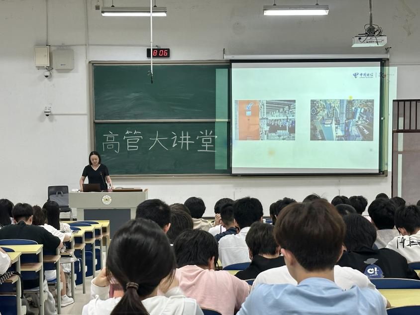 )特邀中国电信南京分公司人力资源部副主任李盈女士走进“高管大讲堂”,为同学们带来题为《连接未来——如何成为一名“电信人”》的专题讲座。