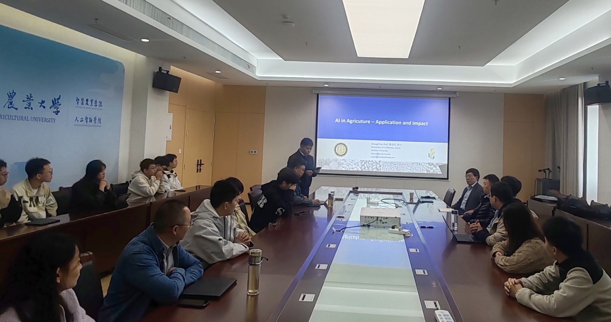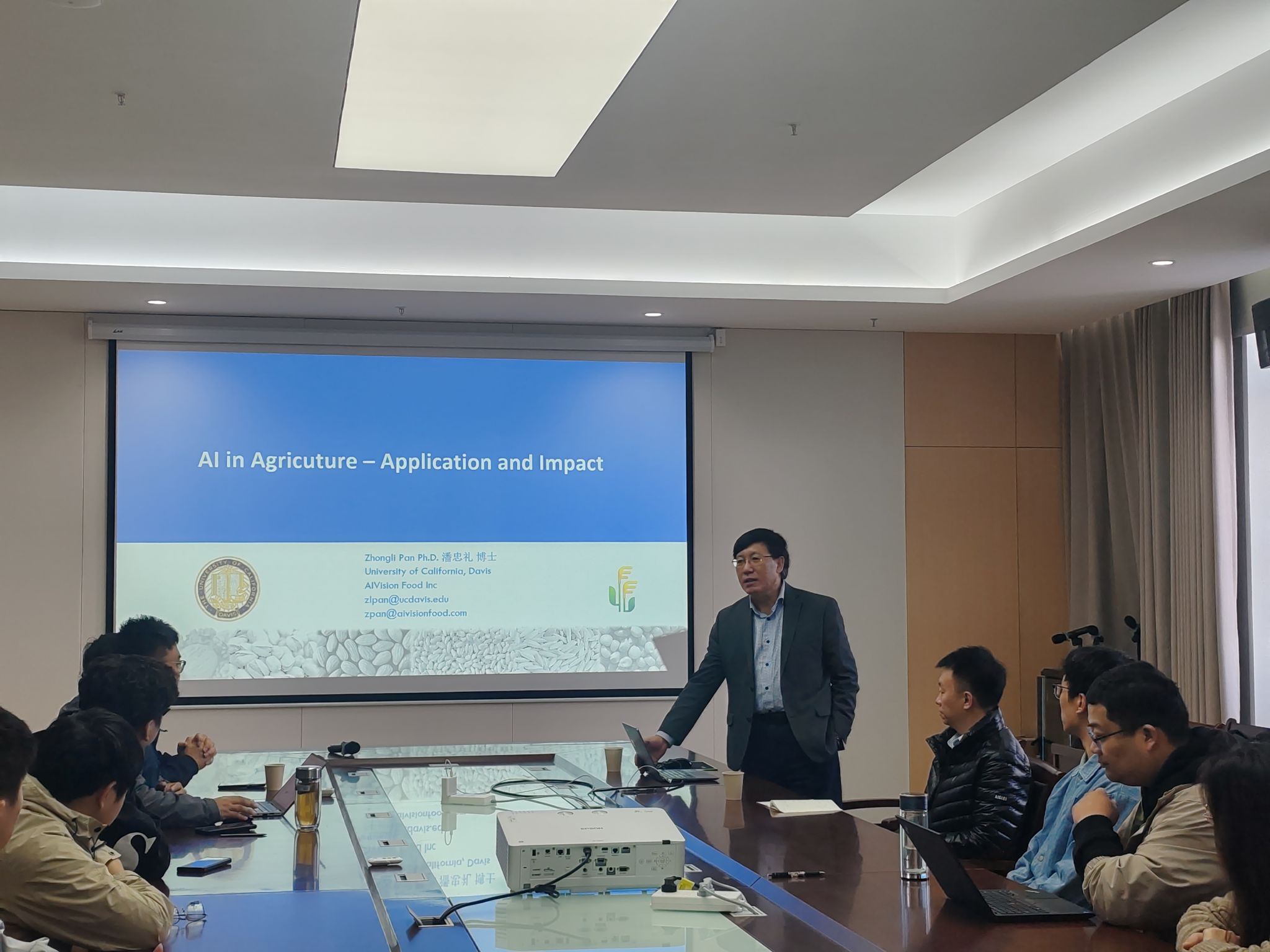 )主办的“智汇大讲堂”第三期在滨江校区12号楼A863顺利举行。本期报告特邀美国加州大学戴维斯分校教授、AIVISION FOOD INC创始人兼CEO潘忠礼博士担任主讲嘉宾,报告主题为《A1 in Agriculture – Application and Impact》。报告由中文色情
