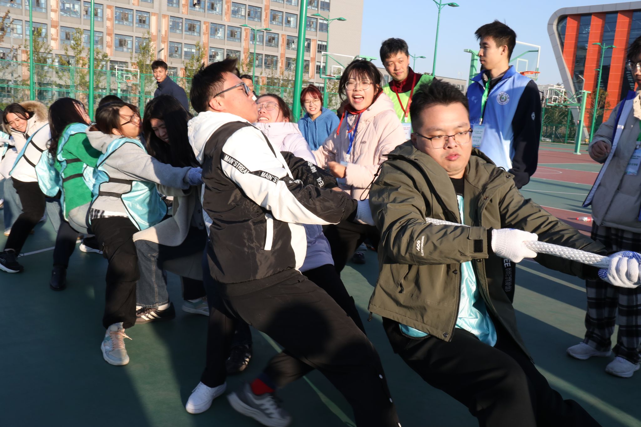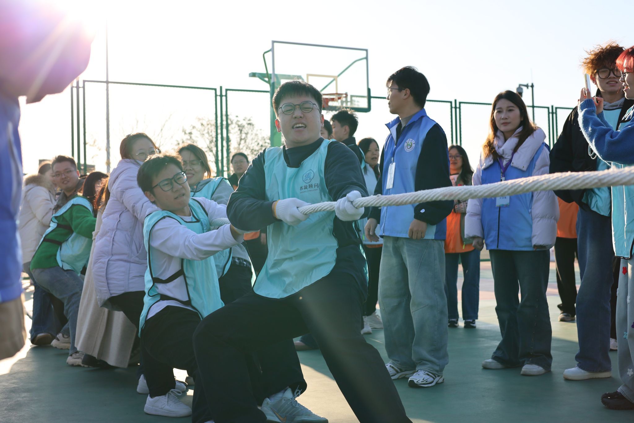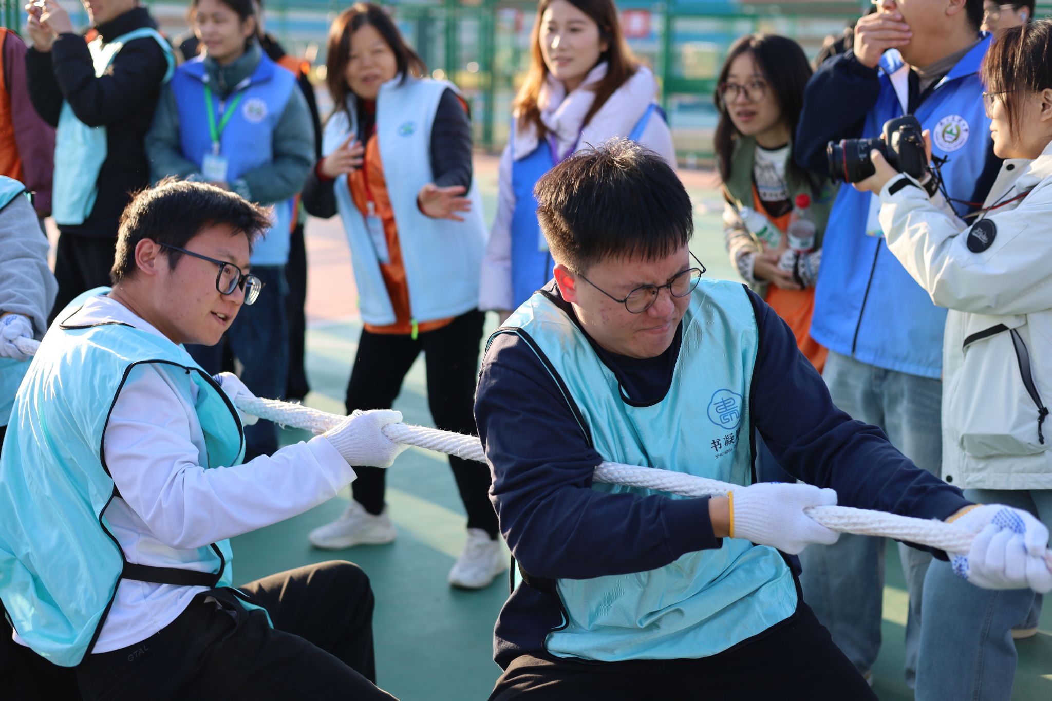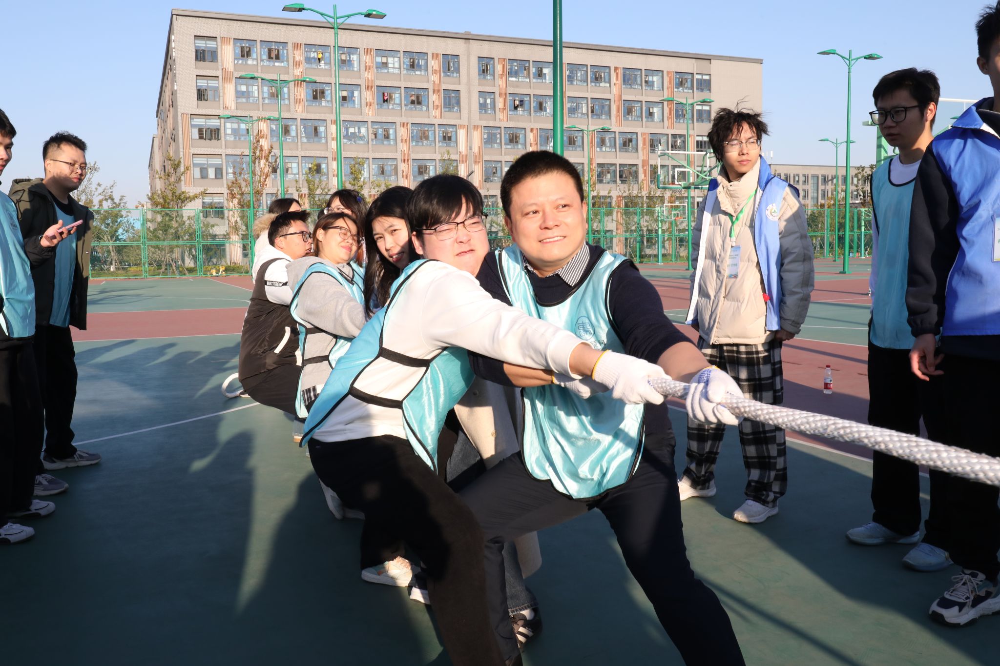 师生和谐奋进的场景随处可见。“研途·学海滚滚”项目中,师生协同托举道具,以统一节奏稳步前行,额间汗珠与默契眼神相映成趣;“研海破浪行”环节,双方配合紧密、高效联动,现场助威声此起彼伏;“稻田越野赛”里,师生交接瞬间的有力击掌,既是任务传递,更是信任彰显;集体拔河时,全体队员凝心聚力、奋力拼搏,充分展现团队韧性。待赛师生在赛场周边组成后援团队,实时助威鼓劲,并提供补给、装备整理等保障服务,场内外高效联动进一步凝聚团队合力,为参赛队员筑牢坚实后盾。