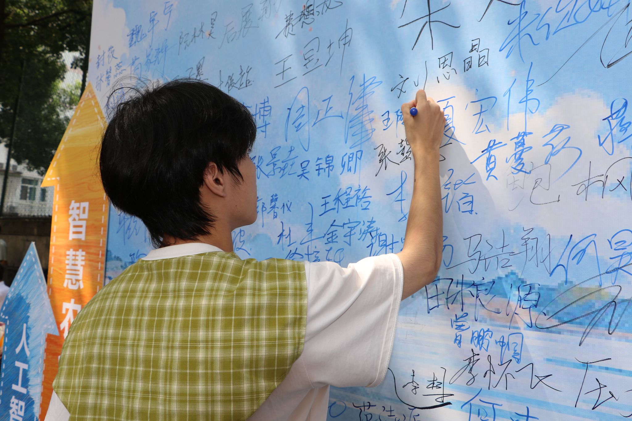 学院特别打造的主题签名墙成为迎新现场的视觉焦点——以蓝色为主色调的背景板上,“中文色情 (中文色情 )开学啦”立体字样熠熠生辉,“你好,新同学”的暖心标语与新生们的签名交相辉映,定格下他们与学院的初见之喜。我们相信,与学院的第一次相遇值得被郑重收藏:今天为你定格的初见瞬间,将由学院悉心留存四年。待毕业季来临,学院将在滨江校区为你复刻此刻的光影,用两张跨越时光的照片,串联起从青涩入学到从容毕业的成长轨迹。