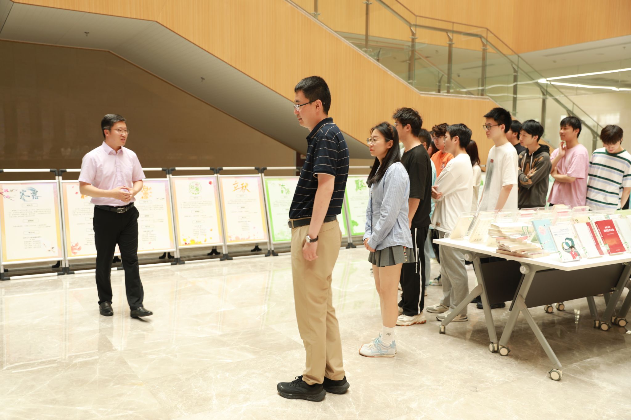 )本科生辅导员魏宇宁携20余名学生参展。本次展览融合“悦读社会主义核心价值观”与“二十四节气文化”两大主题,通过多元展陈形式,带领观众领略传统文化与时代精神的交织辉映,展览将持续至6月20日。