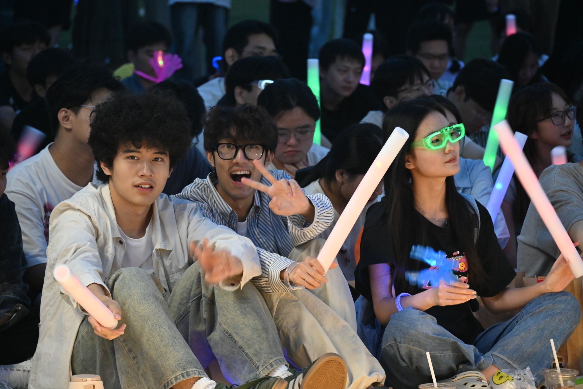 歌会分四篇章,特邀乐队“星火路演计划”与毕业生歌手冯继伟联袂登台,《凤凰花开的路口》《二十二》等二十余首金曲轮番登场,在星空下完成了一场青春与时光的接力。穿插其间的三轮惊喜抽奖,更以定制纪念品点燃全场热潮。