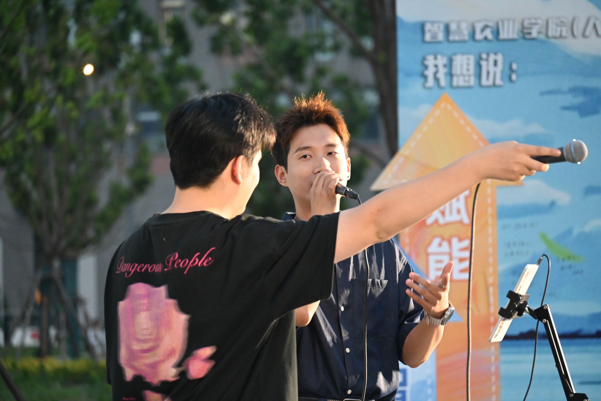 愉快热烈的氛围还吸引来了在操场散步的农学院研究生毕业生陈兆宇与食品学院博士一年级学生吴国俊,他们用歌声表达对毕业生的无尽祝福与不舍。