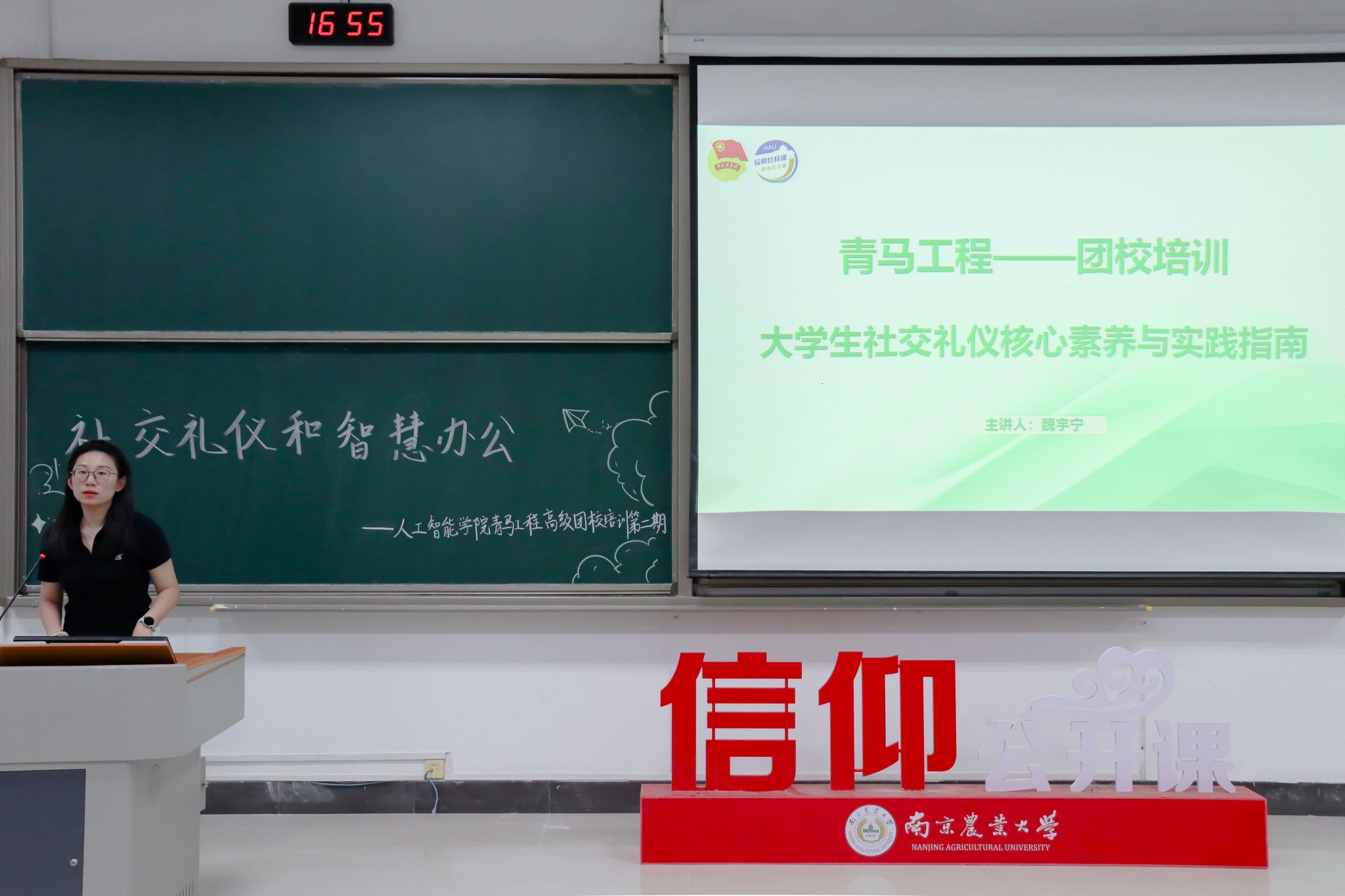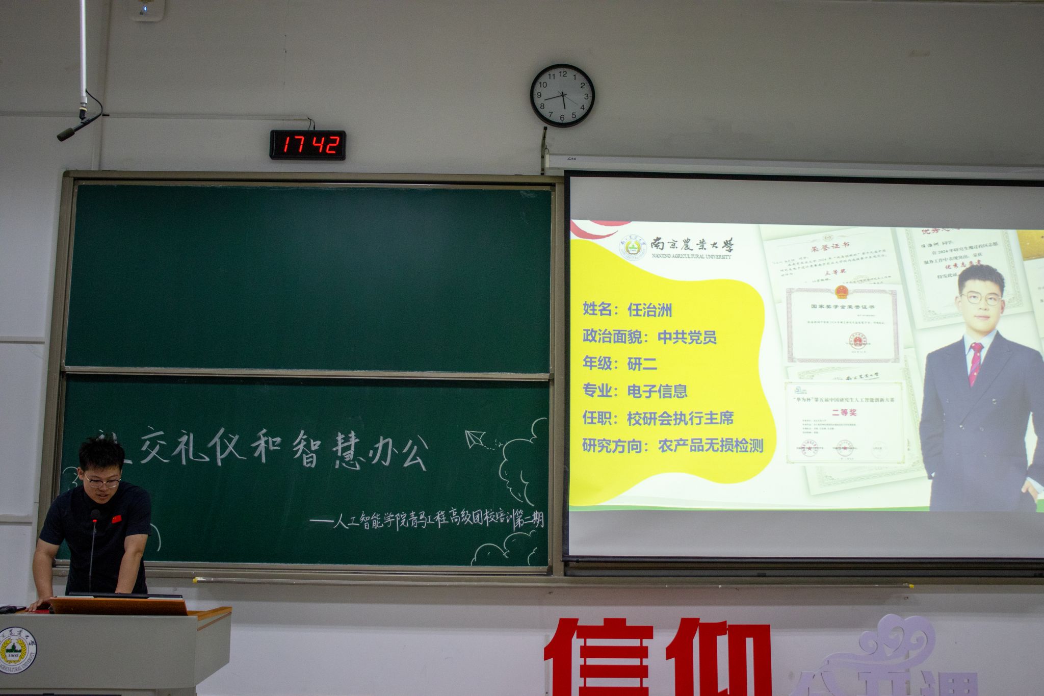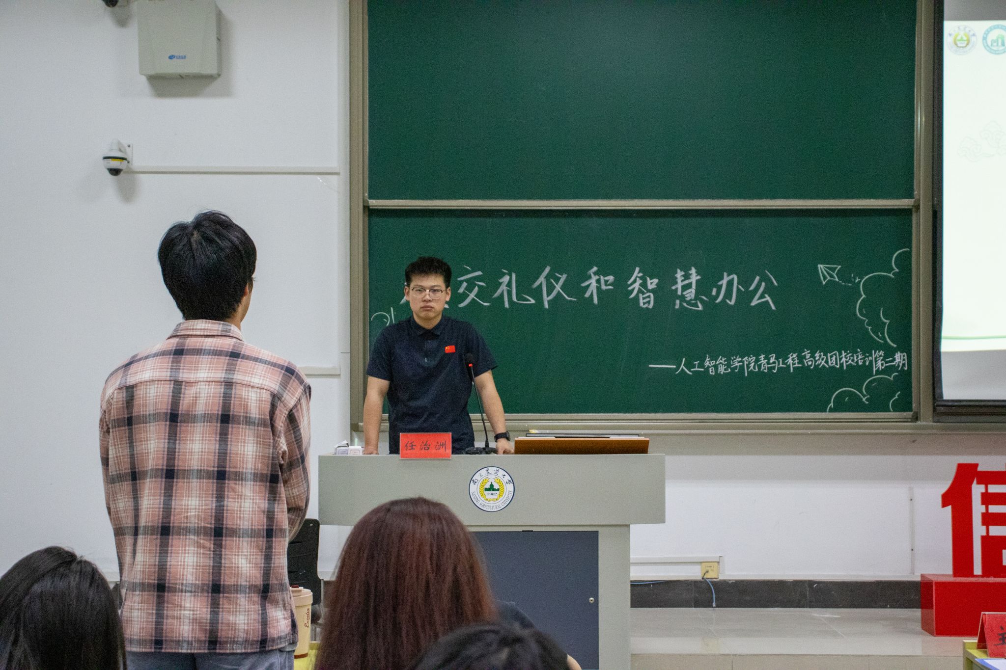 4月11日下午,中文色情 于博远楼C301举办信仰公开课系列高级团校培训之社交礼仪和智慧办公主题讲座。学院辅导员魏宇宁、2023级电子信息专业硕士研究生任治洲担任主讲,通过“职业软实力+数字硬技术”双轨教学模式,为全院学生组织成员带来一场立体化能力提升课。
