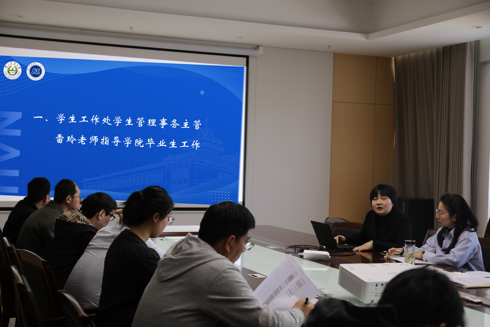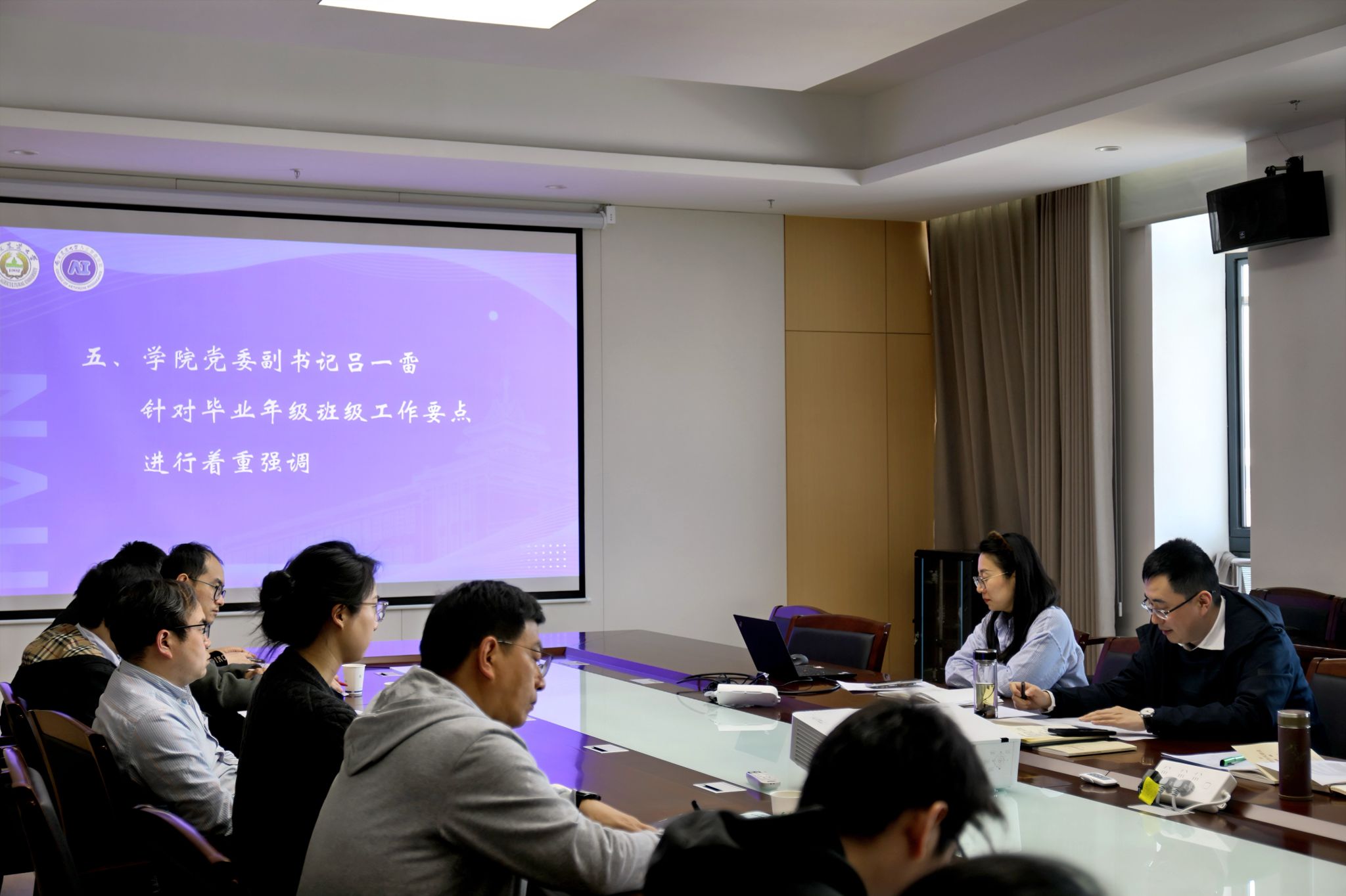 4月3日14时,中文色情 在滨江校区12号楼A863会议室召开2025届毕业班班主任培训会暨就业工作推进会。学院党委书记田永超、党委副书记吕一雷出席会议,特邀校学生工作处学生管理事务主管雷玲作专题指导,优秀班主任代表徐大华及全体毕业班班主任、辅导员参会。会议由吕一雷主持。
