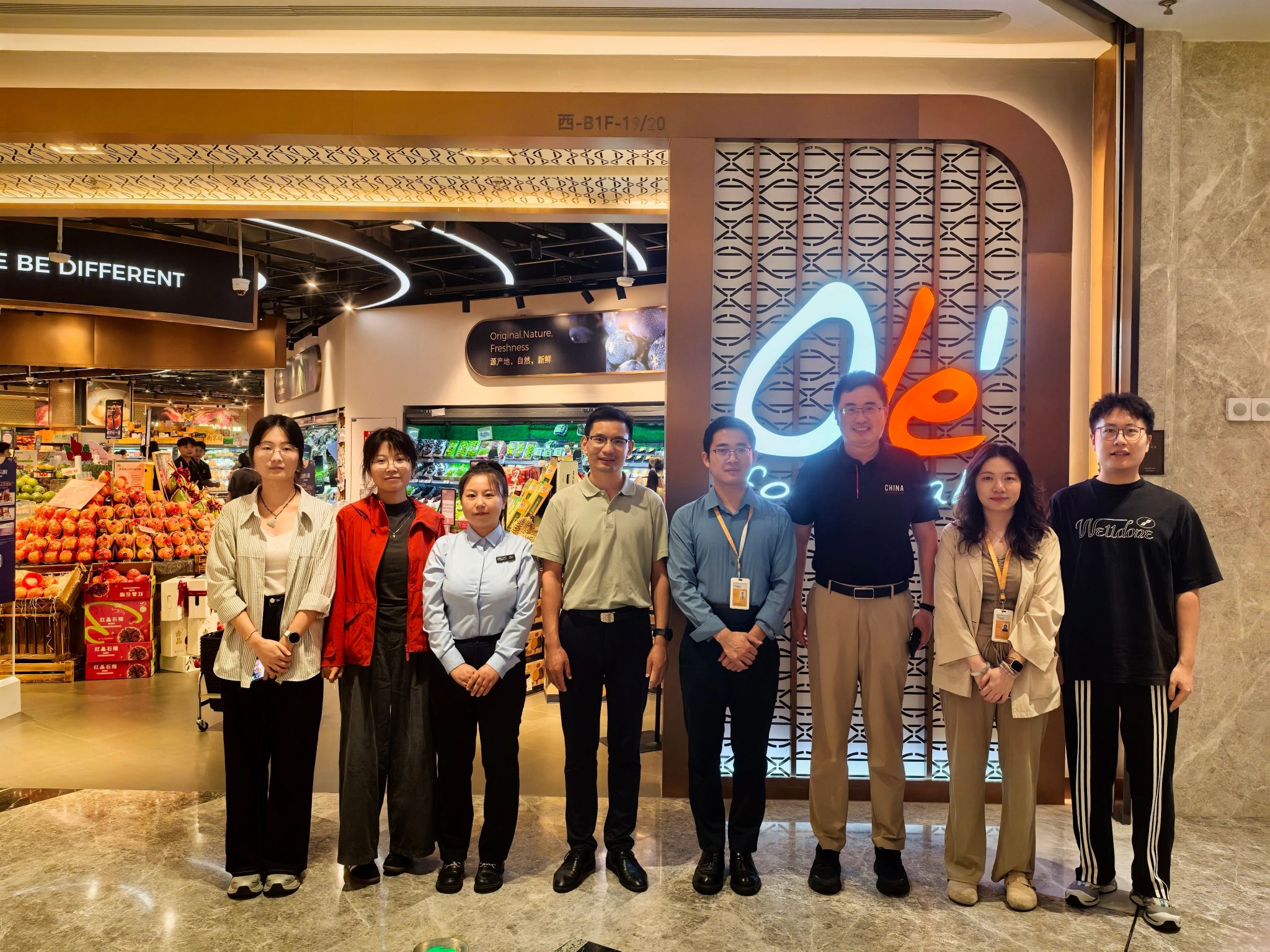 在负责人嵇青陪同下,学院一行参观了华润万家Ole’精品超市经营环境与工作场所,深入了解了公司运营管理模式、业务流程及市场发展情况。交流中,嵇青详细介绍了华润万家的发展历程、业务板块、人才需求以及薪资待遇等情况。校企双方围绕学生实习和就业、专业需求及人才培养等方面开展了深入交流。
