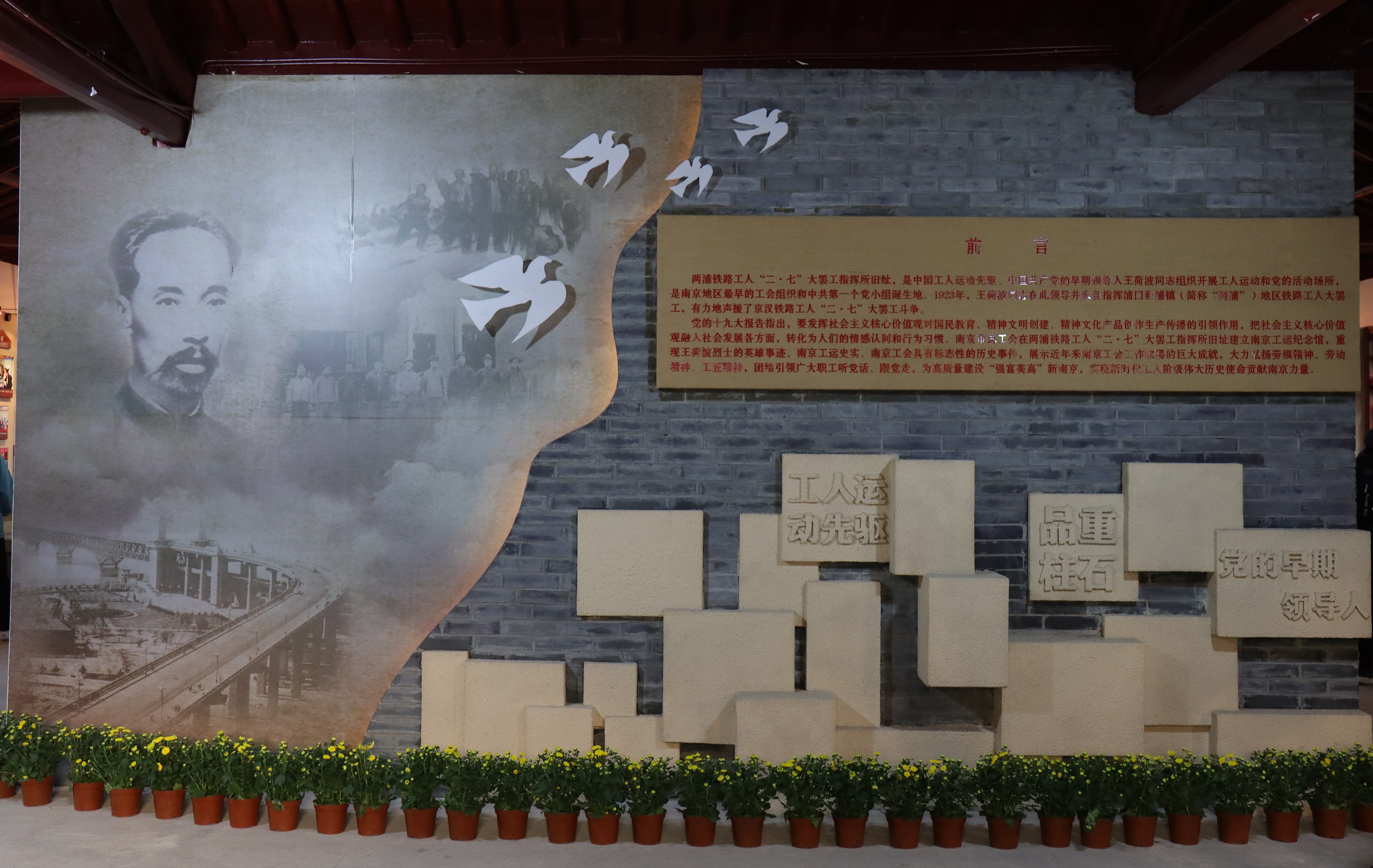 南京工运纪念馆是两浦铁路工人“二七”大罢工旧址,是中国工人运动先驱、中国共产党早期领导人之一、党的第一任纪检干部王荷波开展工人运动和党的活动的场所。王荷波领导成立的南京地区最早的工会组织之一—浦镇机厂“中华工会”曾以此为活动场所,在此也诞生了南京地区第一个党小组——浦口党小组。