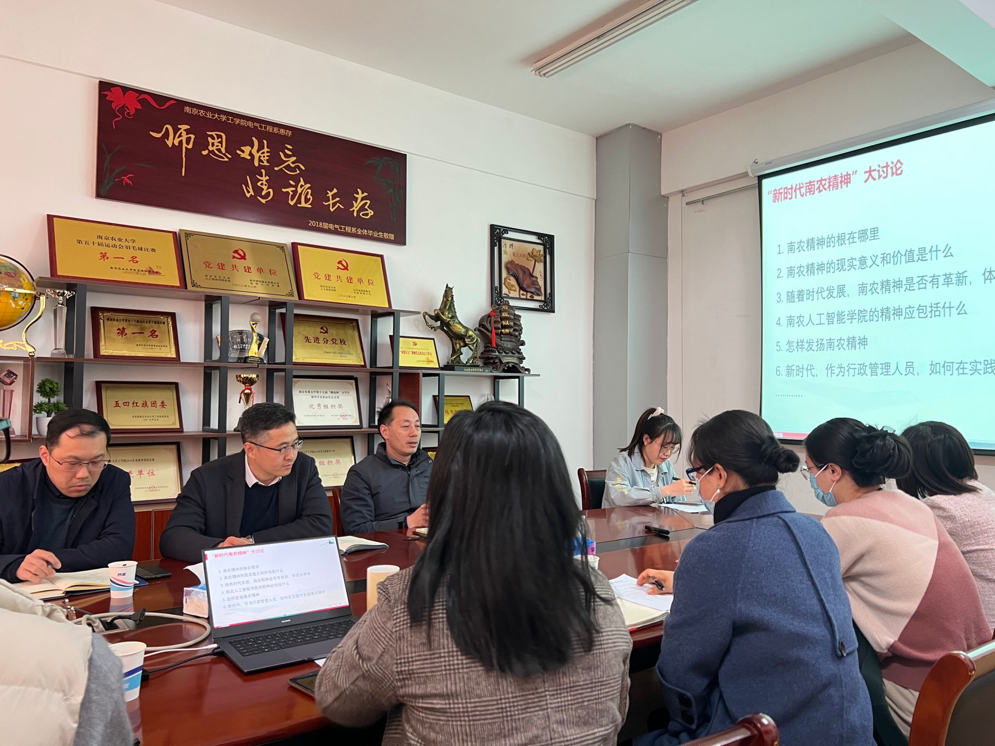 的精神应包括什么”、“新时代,作为行政管理人员,如何在实践中发扬南农精神”等主题进行深入讨论。学院行政人员纷纷表示,要以高质量服务师生为目标,主动熟悉了解学院师生,讲究工作方式方法,提高办事效率,履行好窗口、桥梁的作用,在“新时代南农精神”大讨论中寻根铸魂、传承担当。