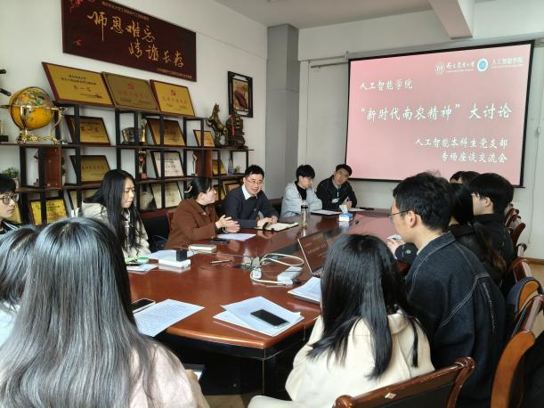 的精神”等问题展开讨论,大家纷纷表示,作为涉农高校人工智能专业的同学,要聚焦强国建设时代命题,以建设农业强国为使命担当,瞄准国际前沿和国家科技发展战略,以“AI技术”之笔答“强国建设,南农何为”之卷。