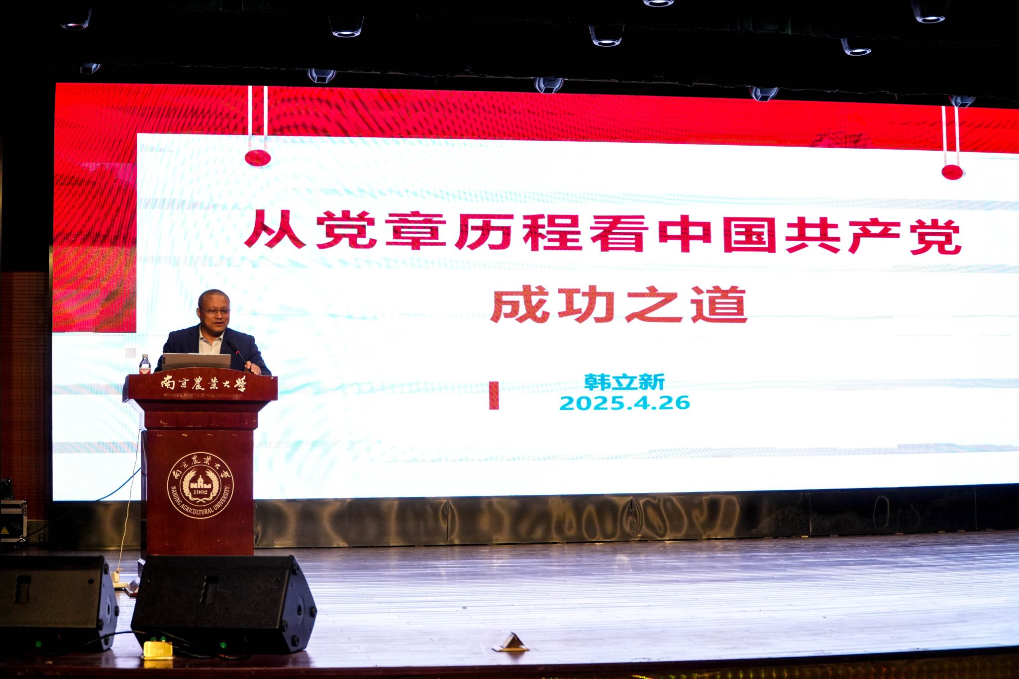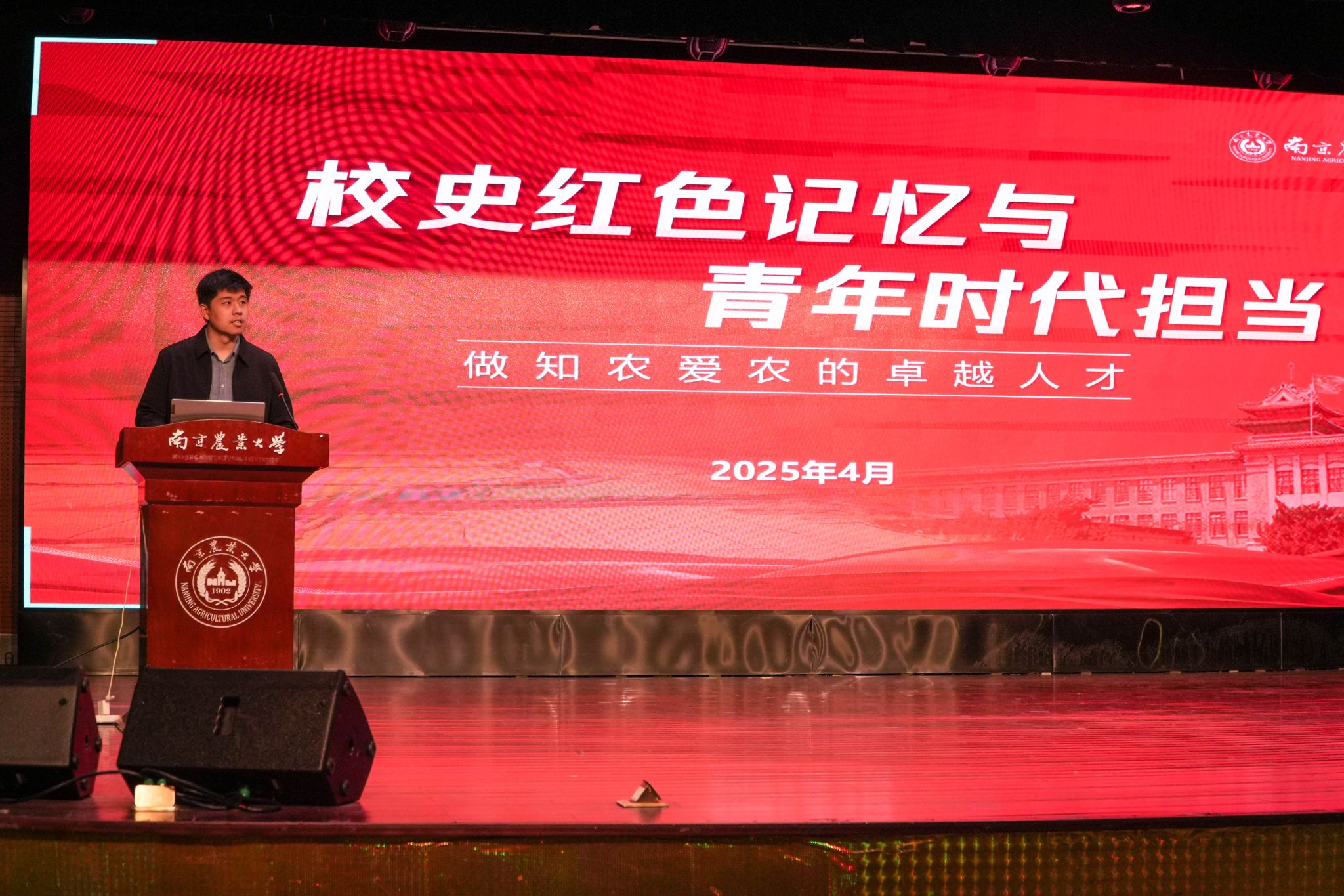 发展历程中的红色印记,将校史与南农精神深度融合。他生动讲述了南农优秀前辈们投身革命、献身教育的感人事迹和新时代南农人的使命担当,带领学员们穿梭于历史长廊,触摸南农深厚的文化底蕴与精神脉络,不仅点燃了学员们的学习热情,更激发起大家接续奋斗、砥砺前行的壮志豪情。