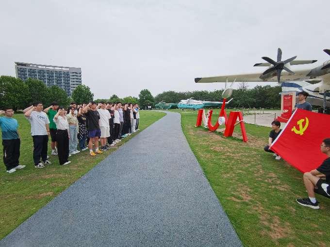 两校三支部共同参观航天教育教学基地与御风园基地。参观航天教育教学基地过程中,师生通过展陈的大国重器、背后的攻坚历程等内容,深入了解老一辈科技工作者们“矢志报国、勇攀高峰”的理想信念与使命担当,引导学生党员在科研中需要时刻铭记“强国有我”的铮铮誓言,科技报国砥砺入党初心。同时,三个支部组织全体党员和新一批发展对象面向党旗庄严宣誓,铿锵有力的誓词回荡在活动现场,字字千钧的承诺让每一位党员再次感受到入党时的神圣时刻。