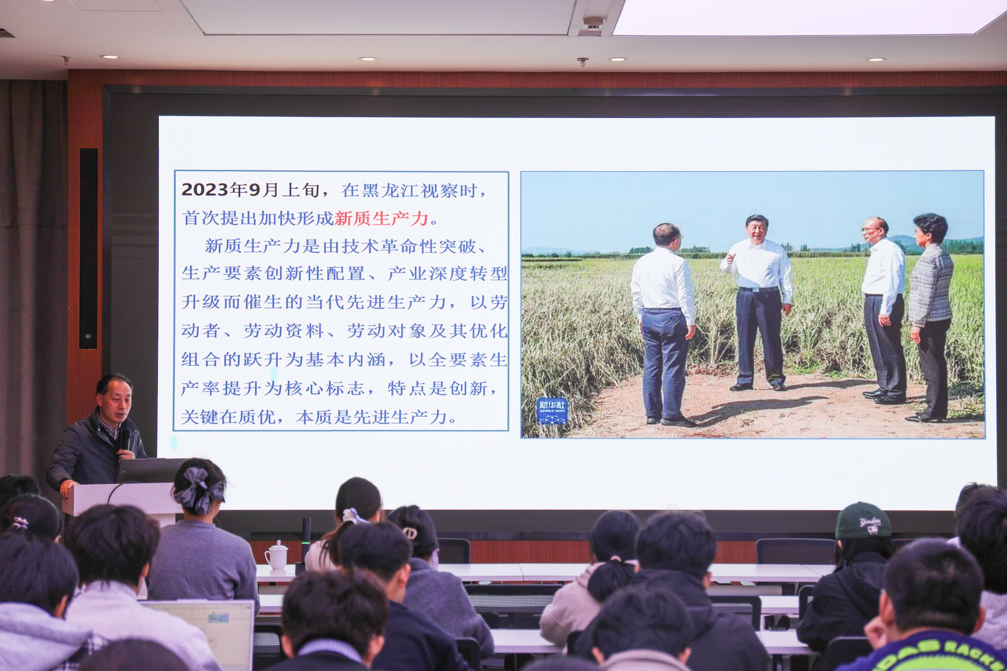 )常务副院长田永超教授以“智慧农业创新驱动农业强国建设”为题,在白马基地为师生讲授了一堂内容丰富、思想深刻的专题党课。党课由学院党委副书记吕一雷主持,组织员张鸣、实训中心章世秀、本科生辅导员封筱以及2023级学生代表共同参加。