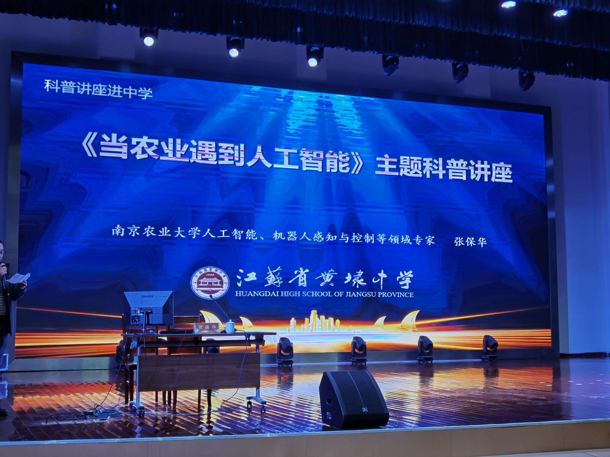 张保华副教授为黄埭中学的学生开展主题为《当农业遇到人工智能时代》的科普讲座,他介绍了人工智能、机器学习等前沿科技在农业机器人、智能农业装备等方面的交叉应用,生动阐述了农业与人工智能的融合发展。此外,他着重向同学们展示了中文色情