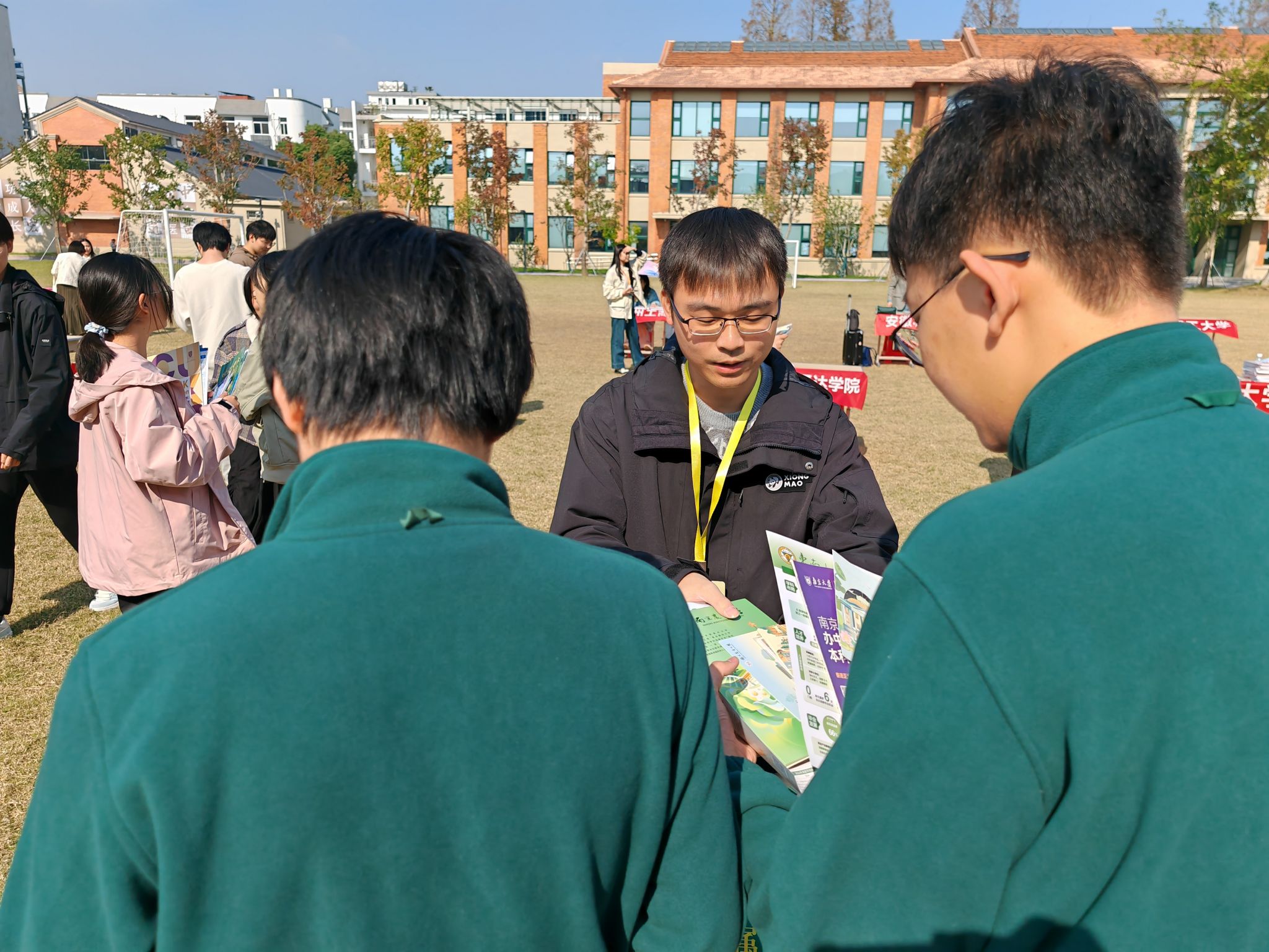 招生宣传联络员向同学们发放精心制作的招生宣传单页与定制纪念品,直观呈现学校学科优势、专业设置、人才培养模式及就业前景。面对同学们关于录取分数线、特色专业选择、转专业政策等疑问,老师结合办学实例逐一细致解答。此次活动通过 “资料发放 + 精准答疑” 的形式,让苏州中学学子直观感受南农的办学底蕴与学科魅力,有效增进了对学校的认知度与好感度。