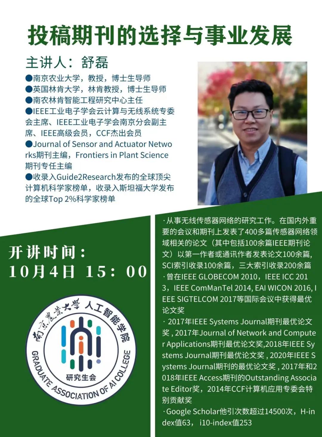 4日下午,舒教授结合个人事业发展在IEEE论文撰写和投稿方面为新生提供了诸多宝贵的意见。