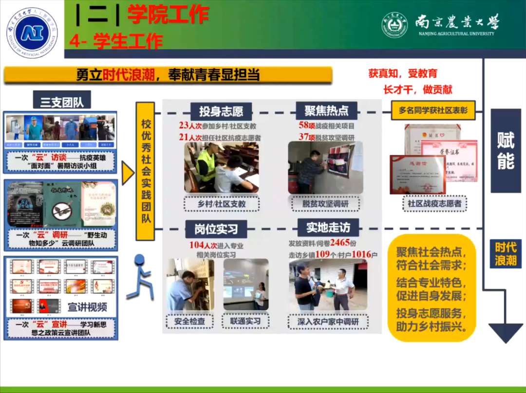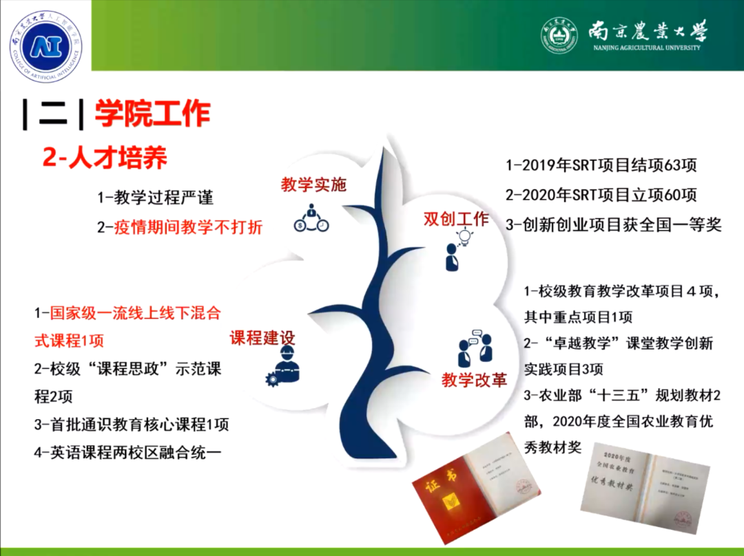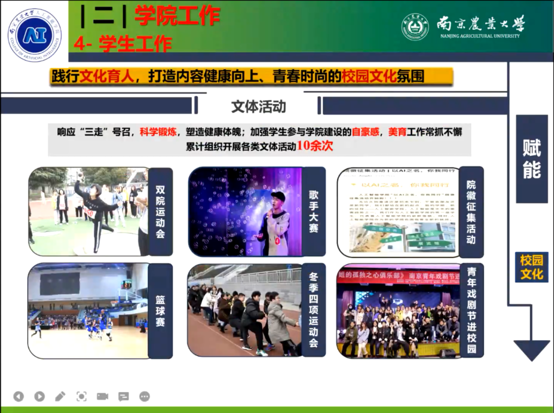 介绍完学院构成后,沈老师向我们展示了学院工作: