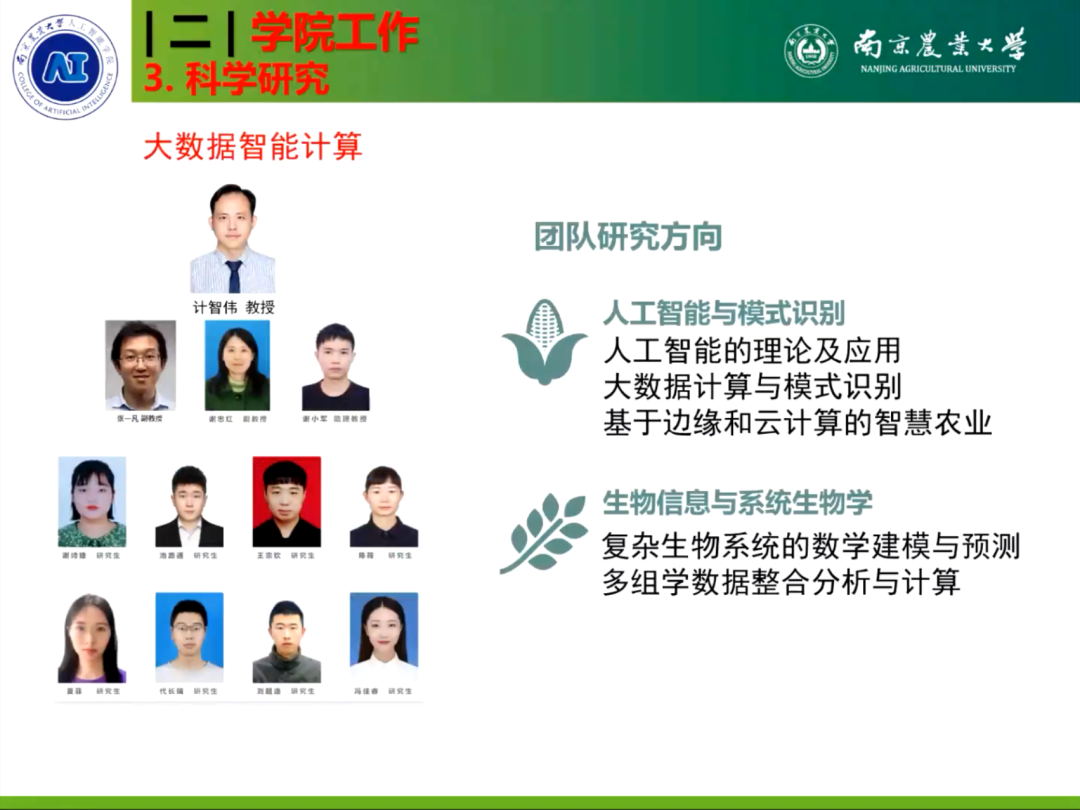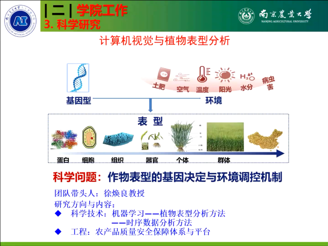 拥有许多科研方向,包括:物联网技术及应用、计算机视觉与植物表型分析、动物表型及精准养殖(装备)技术、大数据智能计算、自动控制理论及智能检测、生物传感及智能装备等方向。