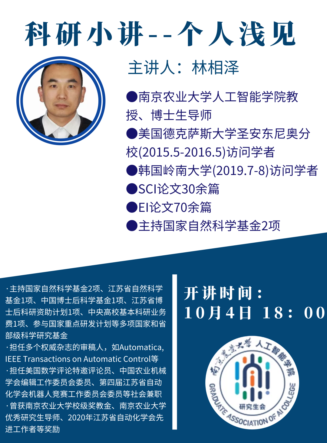 4日下午,林教授从“什么是科研”,“为什么要做科研”,“怎样做科研”三个方面为刚入学的研究生新生提供了学术性的指导。