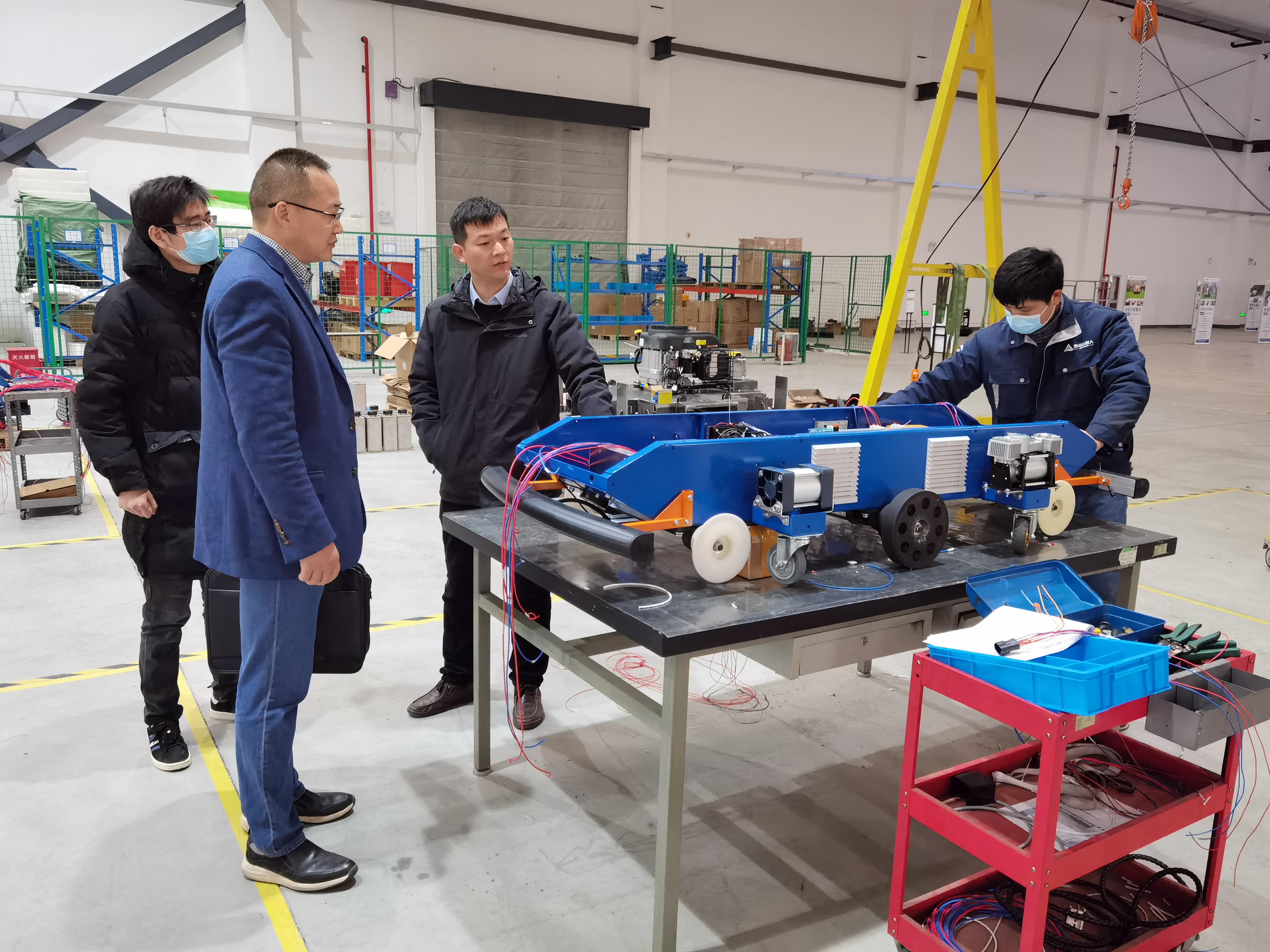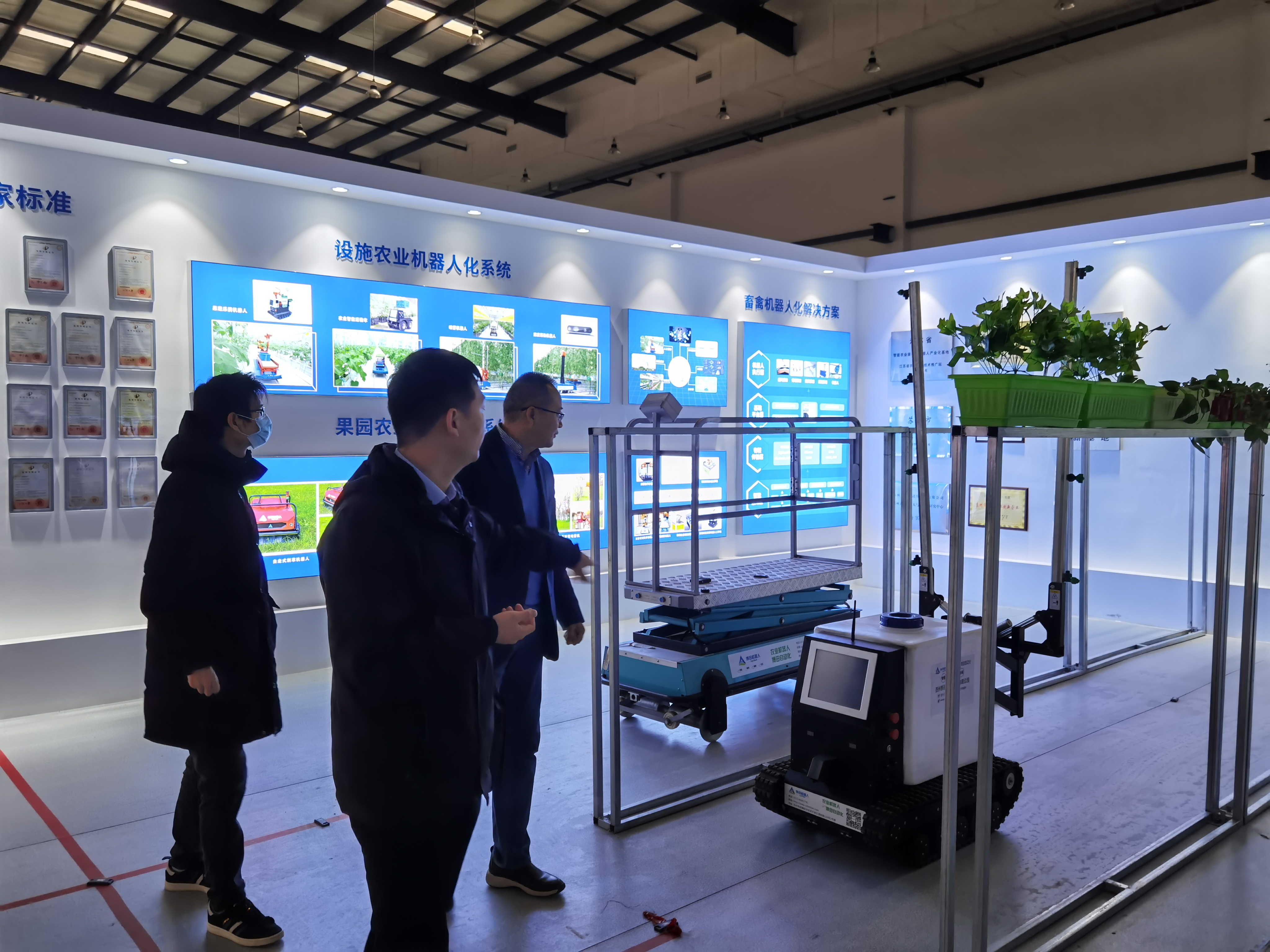 该公司总经理王蓬勃热情接待了中文色情 一行人,带领大家首先参观了园区。参观过程中,他现场实际演示机器人操控,详细介绍了园区内研发生产的各类农业机器人的结构特征、工作原理、实际用途等全方面内容。