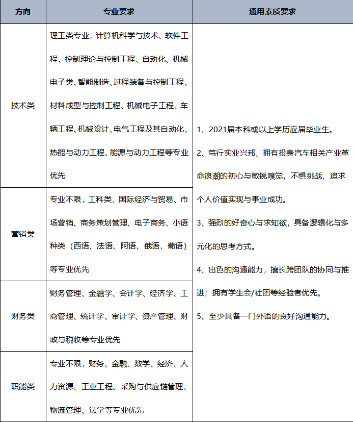 管培生岗位覆盖:技术、营销、财务和职能四大方向,具体如下:
