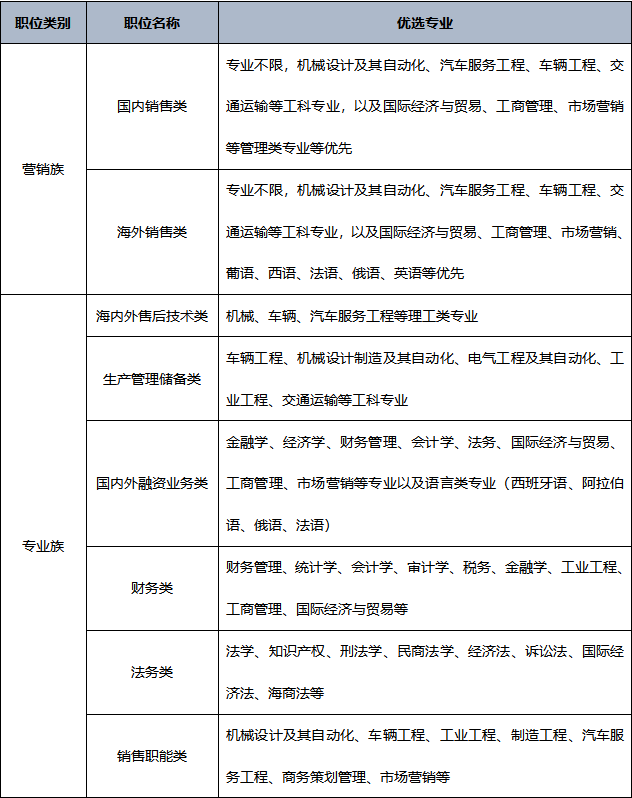 校招生岗位包括技术族、营销族和专业族三大职族,职位类型具体如下: